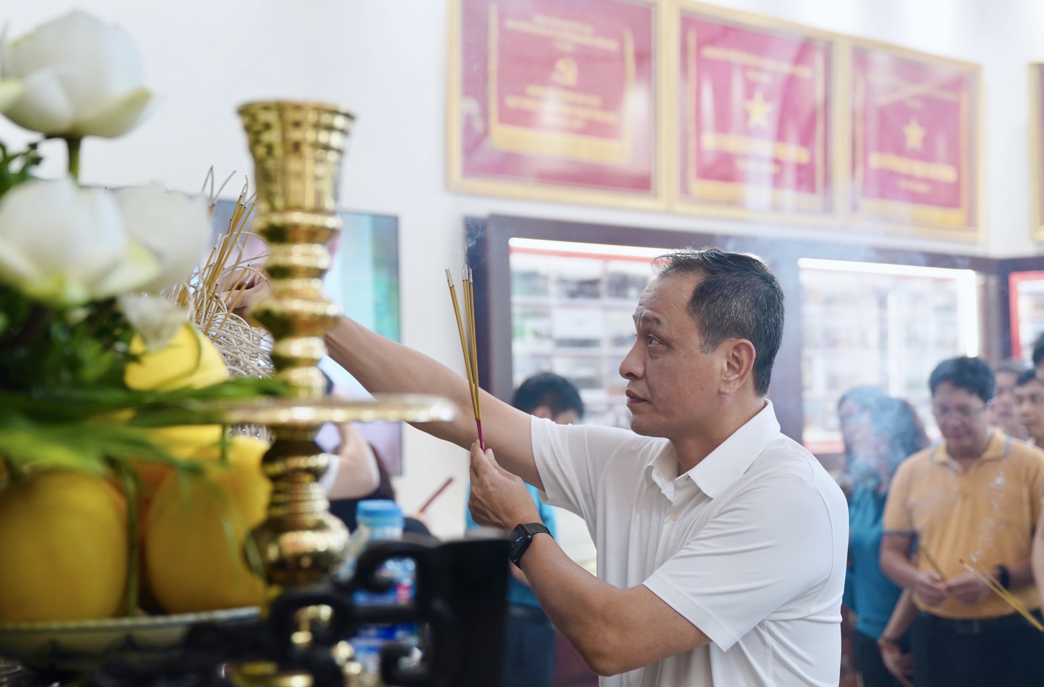 Lễ dâng hương có sự tham gia của Chủ tịch HĐQT Đặng Ngọc Hòa, TGĐ Lê Hồng Hà, các PTGĐ cùng đại diện lãnh đạo TCT, lãnh đạo các cơ quan tham mưu giúp việc Đảng ủy, các Ban, Cơ quan Đơn vị, Công đoàn và Đoàn thanh niên Tổng công ty.