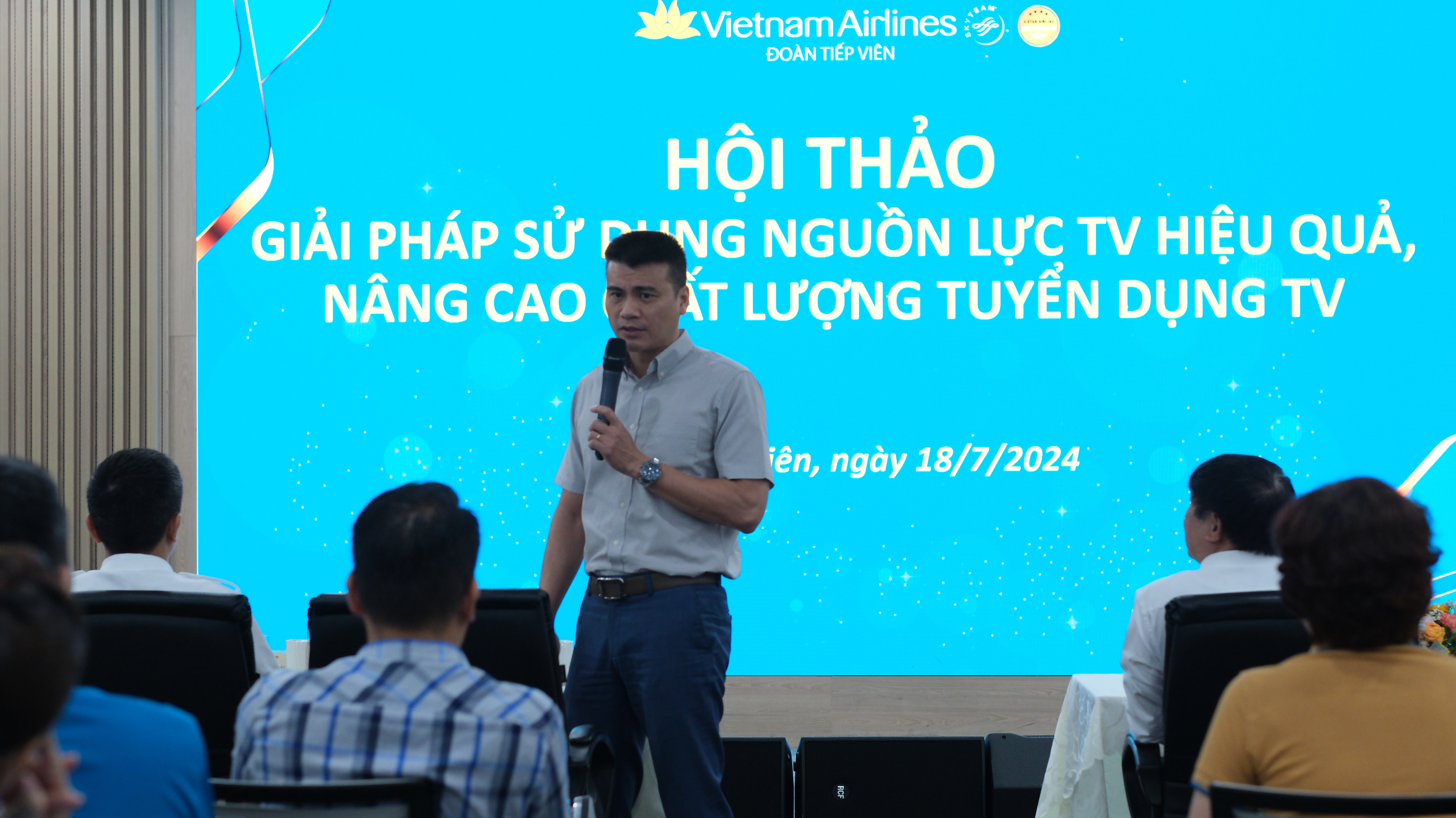 Tại Hội thảo nâng cao chất lượng tuyển dụng Tiếp viên, ĐTV đã trình bày về công tác tạo nguồn, tuyển dụng và các kết quả, ý nghĩa của hoạt động mang lại trong suốt thời gian qua. P.TGĐ Trịnh Hồng Quang đề nghị ĐTV xác định tầm quan trọng của việc tuyển chọn, không chỉ thu hút nguồn lao động mà còn cần tạo ra mỗi kỳ tuyển chọn là một kỷ niệm đáng nhớ của ứng viên, là một lần khảo sát về chất lượng dịch vụ của VNA; điều chỉnh phương thức quảng bá thông tin và cách thức tuyển dụng; nghiên cứu xu thế dịch chuyển của thị trường lao động; tổ chức cho học viên tham quan trụ sở VNA sau khi tốt nghiệp.