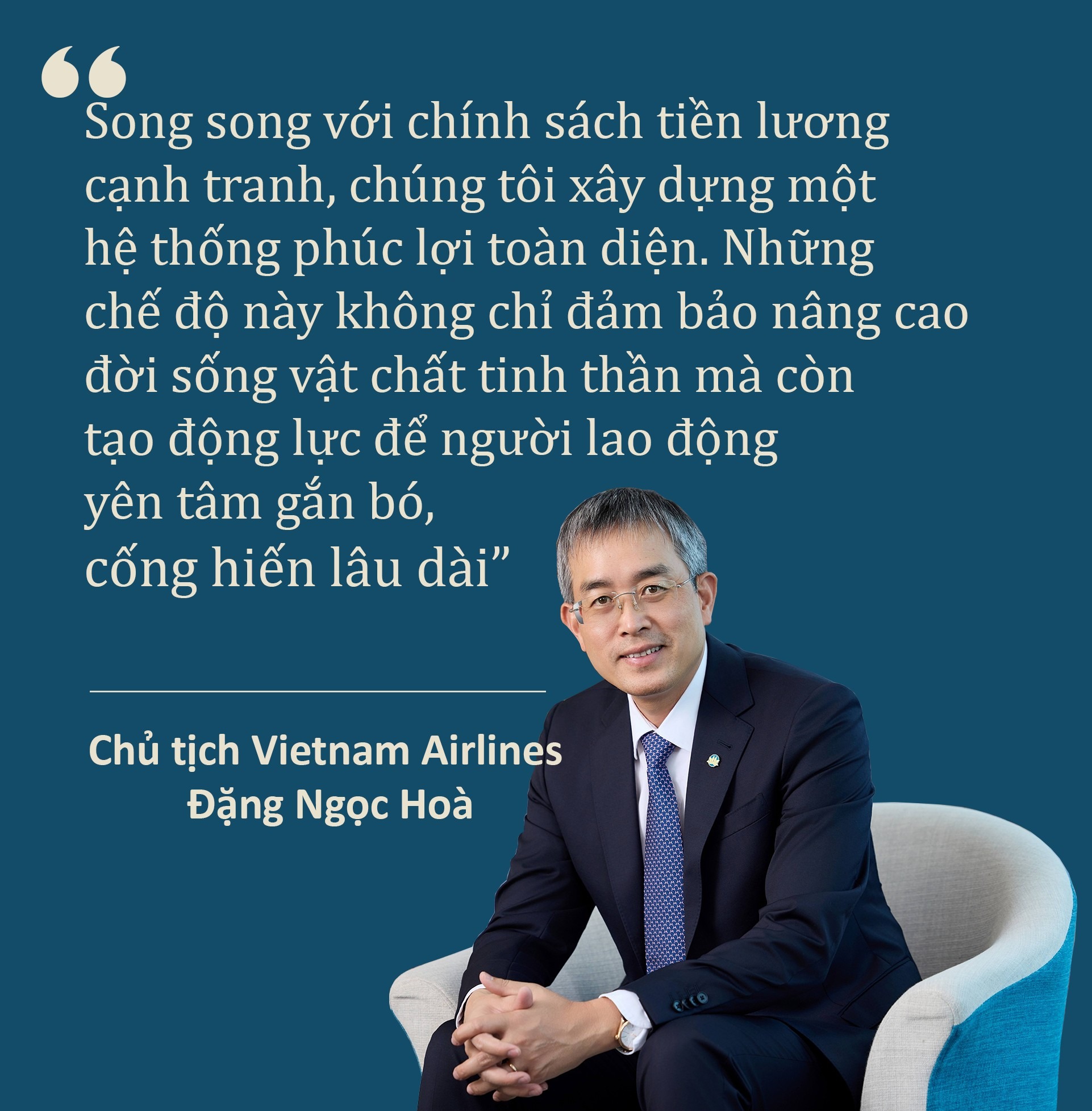 Ngay từ năm nay, chúng tôi đã đi trước trong việc áp dụng cơ chế trả lương hiện đại, gắn với vị trí chức danh, năng lực và hiệu quả công việc. Với lực lượng đặc thù như phi công, tiếp viên, Vietnam Airlines trả lương chủ yếu theo giờ bay an toàn và chất lượng dịch vụ, giảm tối đa việc trả mức lương cố định. Điều này vừa đảm bảo công bằng, vừa khuyến khích mỗi cá nhân nỗ lực hơn để đảm bảo an toàn trong khai thác, nâng cao năng suất và trải nghiệm khách hàng.