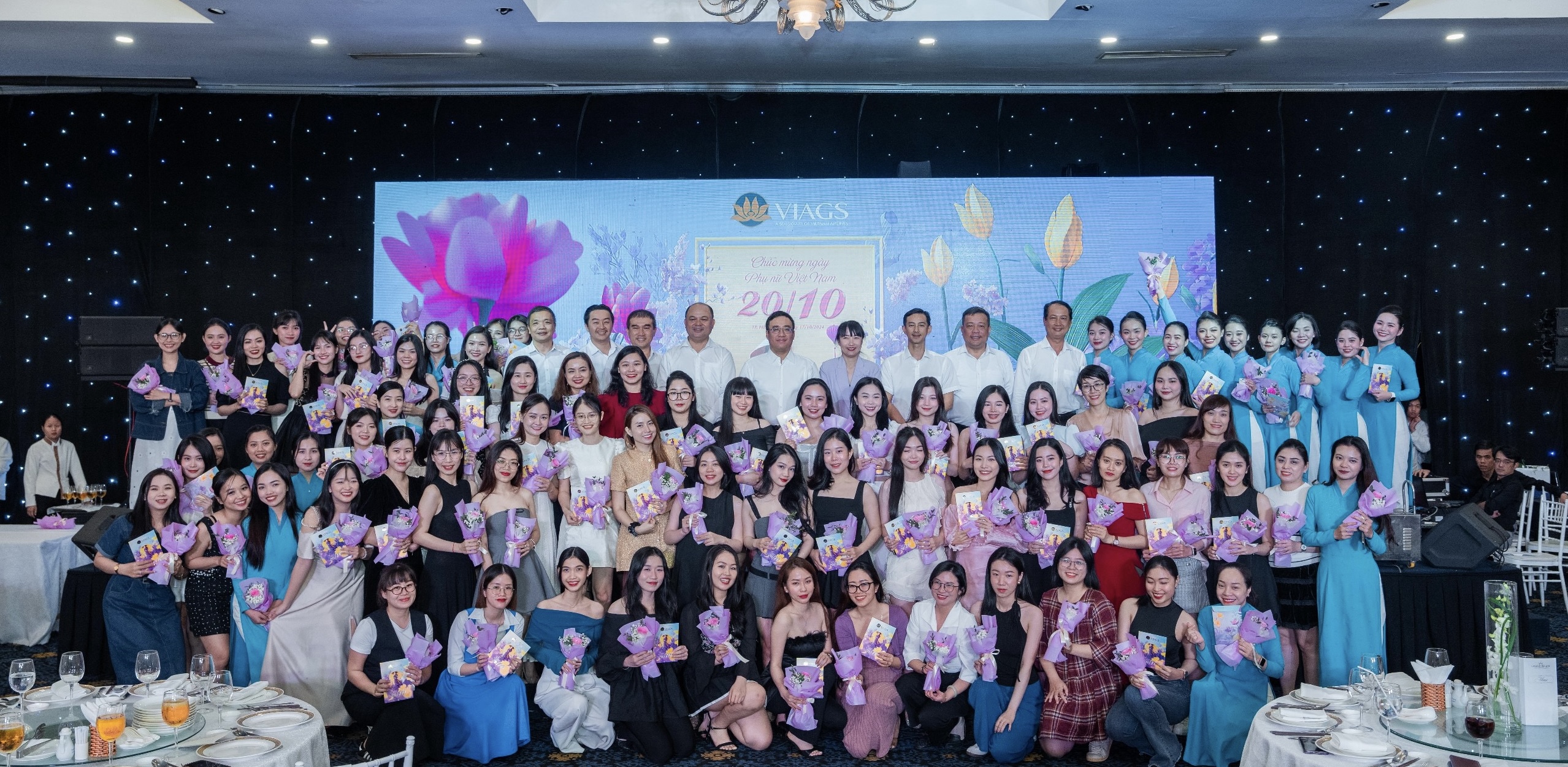 Sau tiếng hô vang tự hào VIAGS khai tiệc, cùng sự “chăm chút” của các anh em; hơn 1.500 chị em CBNV VIAGS 3 miền cùng bên nhau rôm rả chuyện trò, vui cười…trong suốt các bữa tiệc. Trong không gian tràn ngập màu sắc, các tiết mục văn nghệ sôi nổi, trò chơi cũng đã mang đến nhiều tiếng cười và niềm vui cho chị em.
