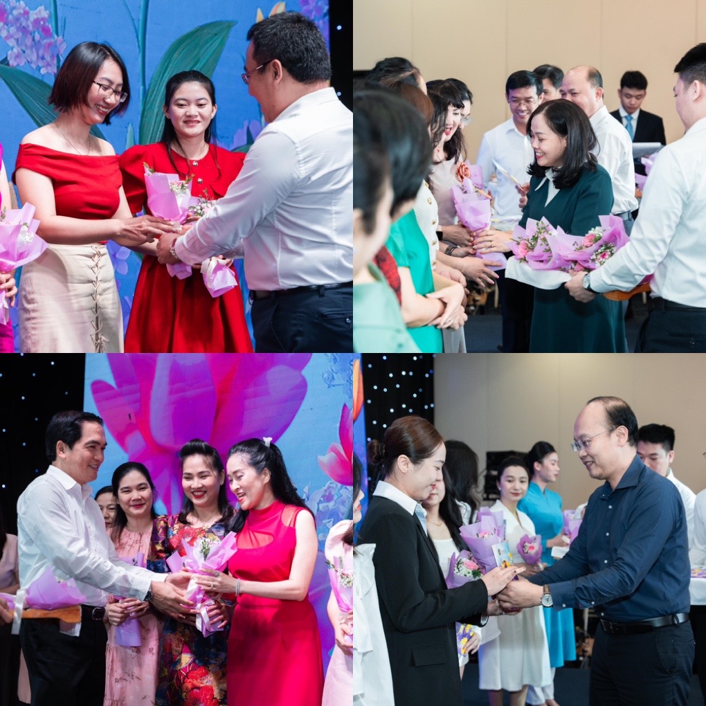 Trong tiếng cười nói rộn rã, các chị em đã được nhận những bó hoa tươi thắm và tấm thiệp tím yêu thương cùng những lời chúc tốt đẹp từ BLĐ công ty, chi nhánh. Không còn khác biệt đơn vị công tác hay độ tuổi, trên sân khấu là những người phụ nữ xinh đẹp, sáng bừng niềm vui được yêu thương, quan tâm, trân trọng!