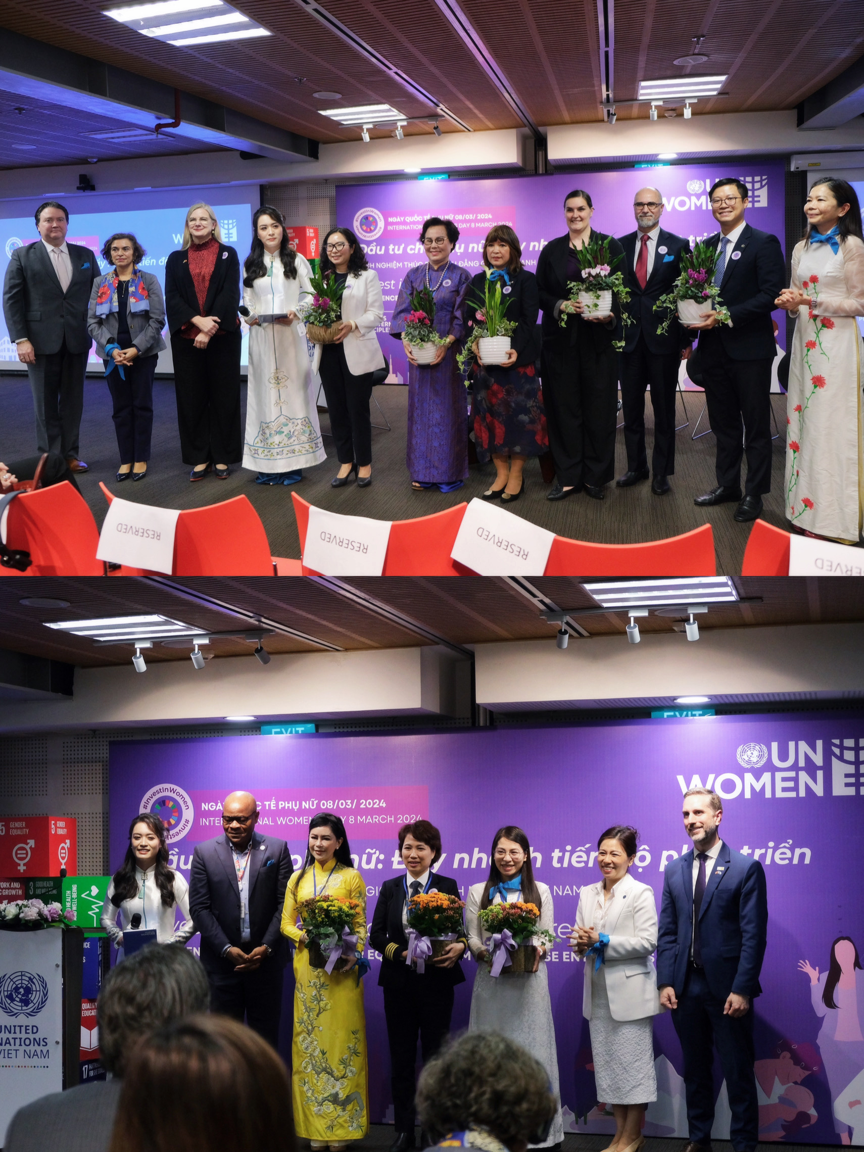 Chương trình bao gồm phiên thảo luận “Đầu tư cho phụ nữ: Từ chính sách đến thực tiễn”. Tại đây, ông Đỗ Đông Hưng – Phó Trưởng ban Truyền thông, Phó Trưởng ban Vì sự tiến bộ của Phụ nữ (VNA) đã có những chia sẻ thẳng thắn về các chính sách, nỗ lực của VNA trong đầu tư cho phụ nữ cùng với các diễn giả như bà Mai Thị Diệu Huyền – Phó Trưởng ban, Phó Chủ tịch phụ trách Hội đồng doanh nhân nữ Việt Nam; bà Nguyễn Thị Bảo Hiền – Chủ tịch HĐQT Hiền Lê Group; bà Trần Thị Quyên, Giám đốc Nhân sự của Tập đoàn TH; bà Majdie Hordern, Bí thư thứ nhất về Hợp tác Phát triển của Bộ Ngoại giao và Thương mại Úc.