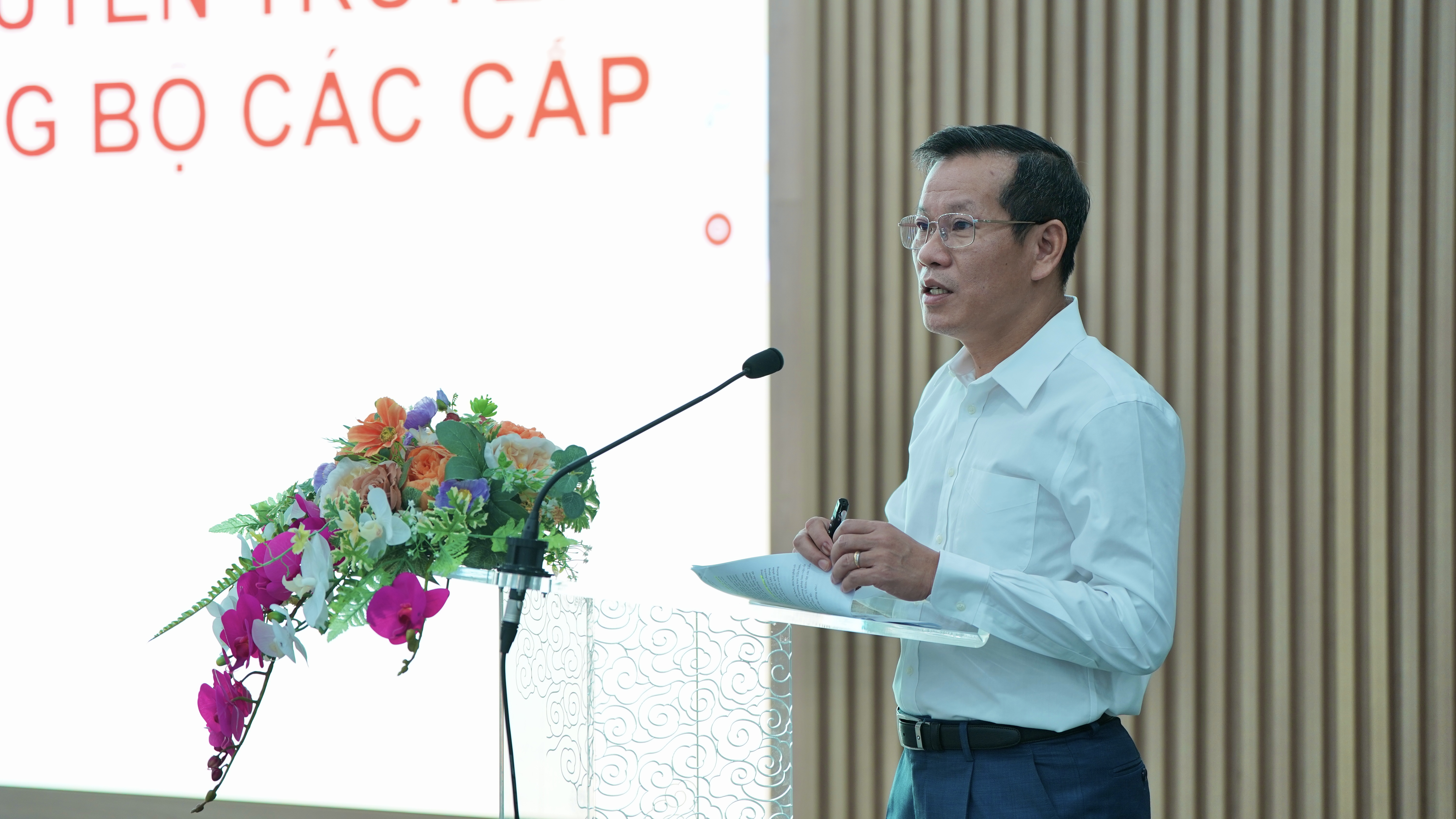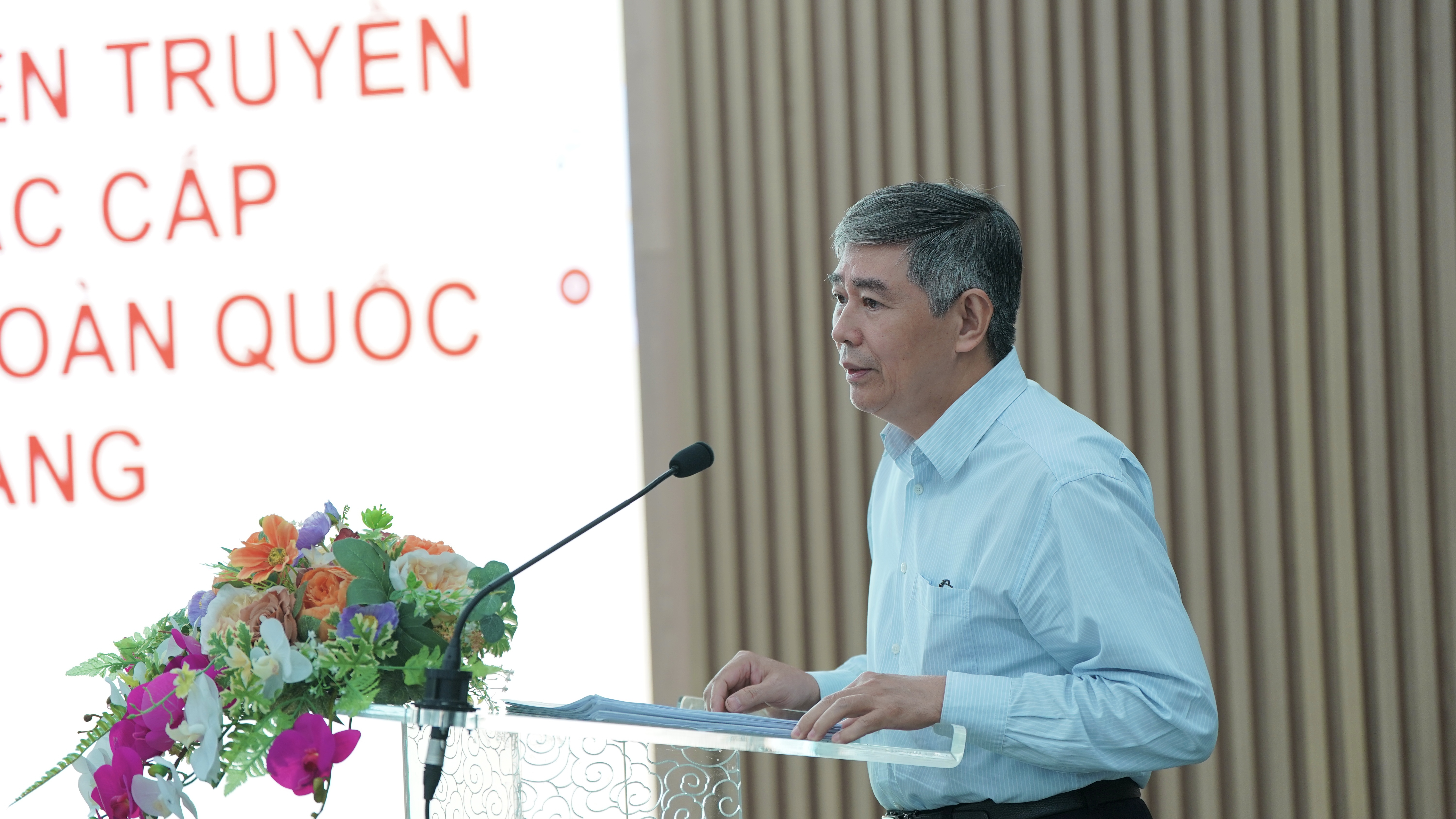 Phần trình bày của UVTV, PTGĐ TCT Đặng Anh Tuấn, Trưởng Ban TGĐU về nội dung liên quan đến công tác xây dựng văn kiện, công tác tuyên truyền về đại hội