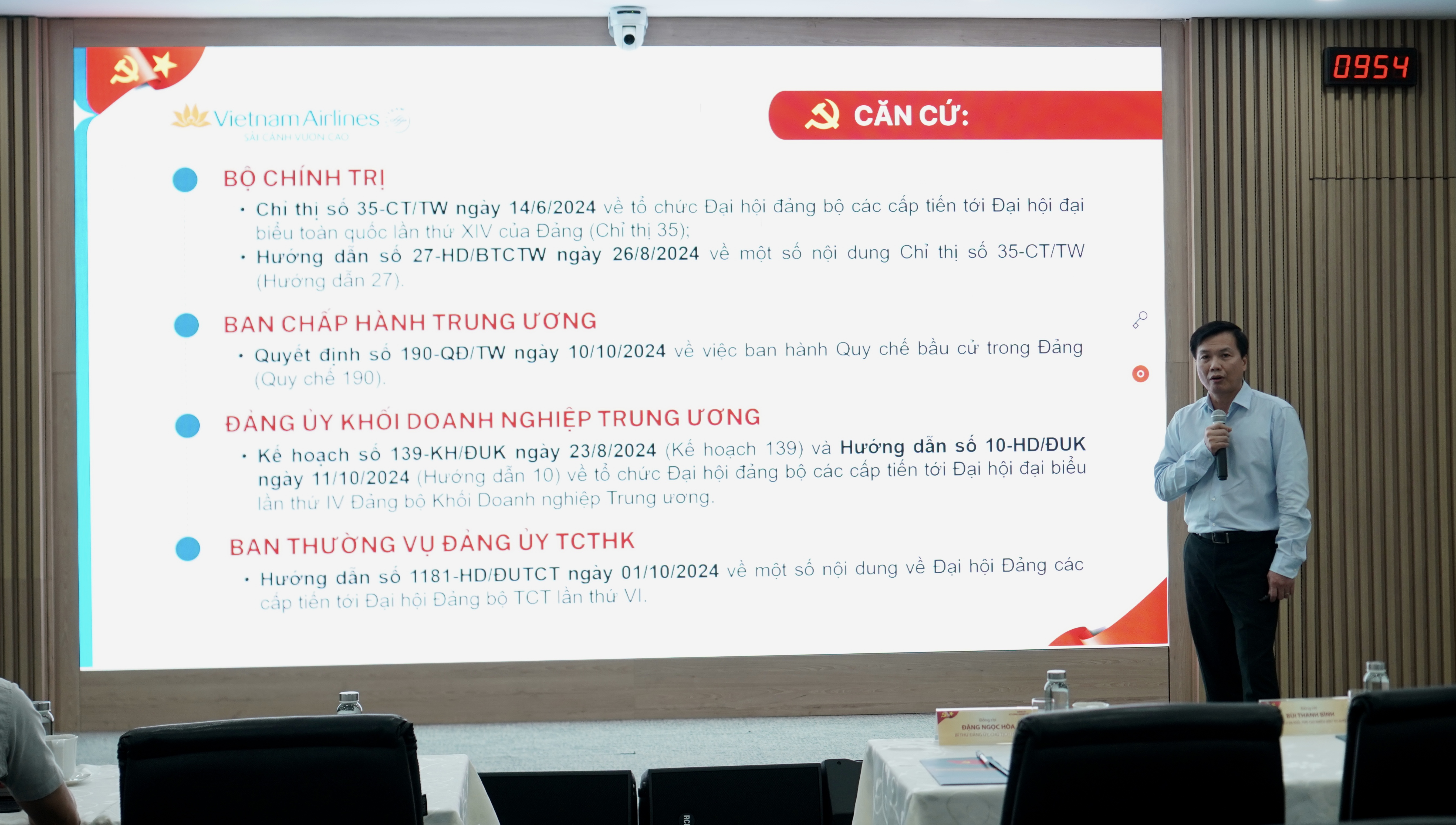 Đồng chí Bí thư Đảng ủy Đặng Ngọc Hòa đề nghị các đại biểu tiếp thu và lĩnh hội đầy đủ, sâu sắc các nội dung cơ bản Chỉ thị số 35-CT/TW của Bộ Chính trị và các nội dung công tác tổ chức Đại hội Đảng do các báo cáo viên có kinh nghiệm của Đảng ủy Khối DNTW, các đồng chí là Trưởng các cơ quan TMGV truyền đạt để triển khai tổ chức đại hội các cấp bảo đảm về yêu cầu, chất lượng, đúng thời hạn và đúng quy định, nguyên tắc của Đảng. Đảng ủy TCT cũng yêu cầu các Đảng ủy, chi bộ trực thuộc chỉ đạo công tác chuẩn bị và tiến hành đại hội đảng các cấp theo những nội dung sau: