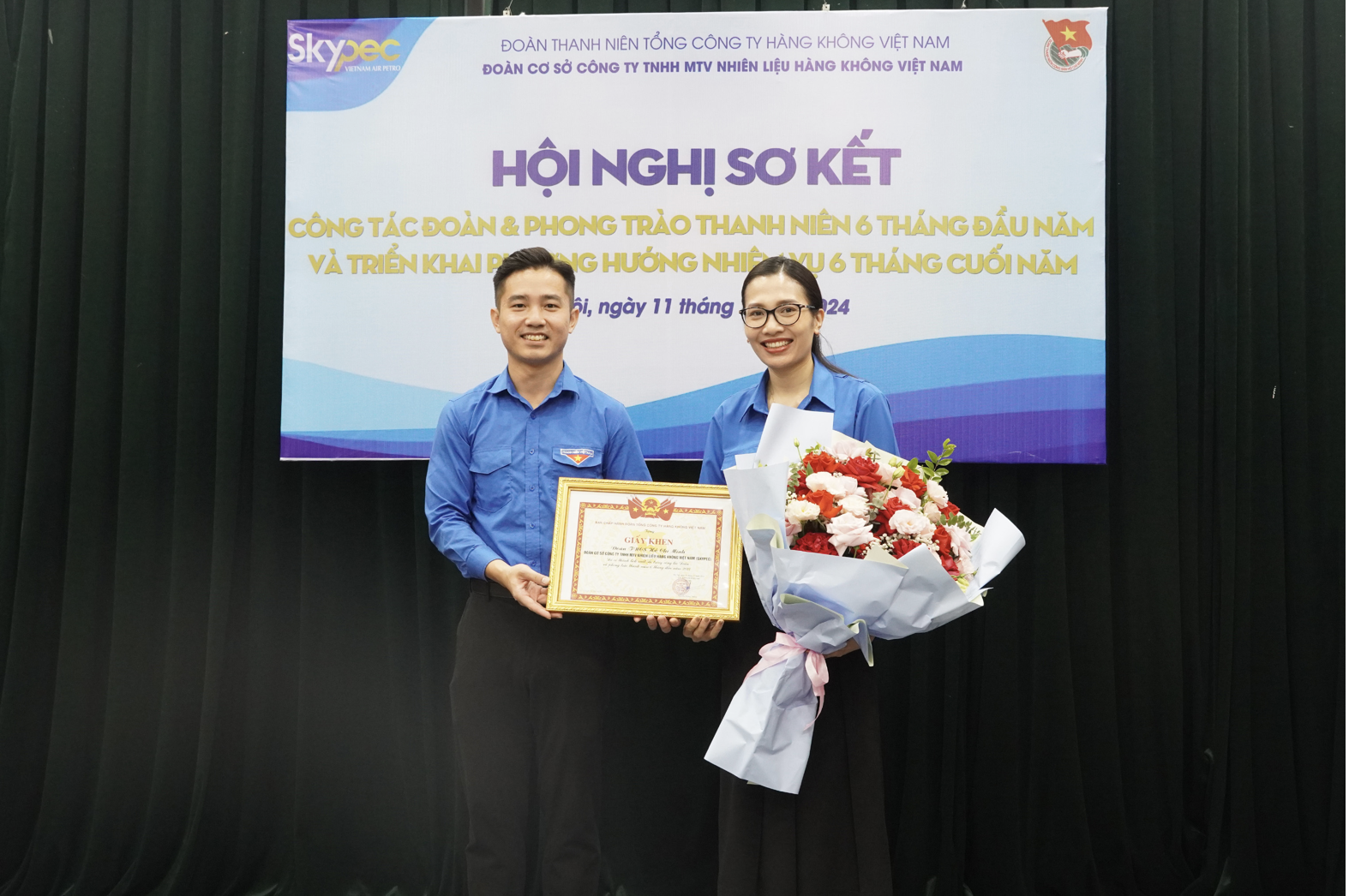 Tham dự và chỉ đạo Hội nghị có đồng chí Trần Minh Tuấn – Ủy viên Ban thường vụ Đảng ủy, Phó Tổng giám đốc Công ty; đồng chí Nguyễn Trọng Thông, Ủy viên BCH Đoàn Khối DNTW, Bí thư Đoàn TCT Hàng không Việt Nam cùng với các đồng chí là cán bộ đoàn chủ chốt, đoàn viên ưu tú đạt thành tích xuất sắc trong công tác đoàn và phong trào thanh niên 6 tháng đầu năm 2024.