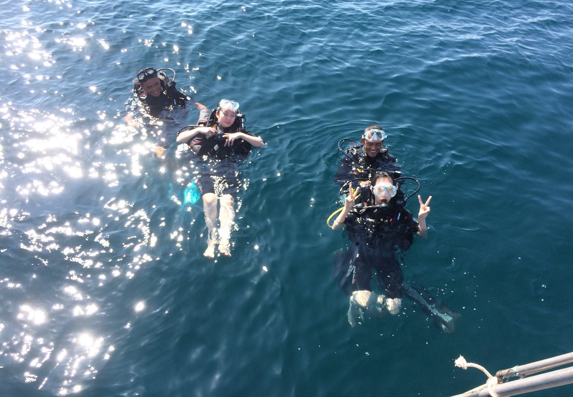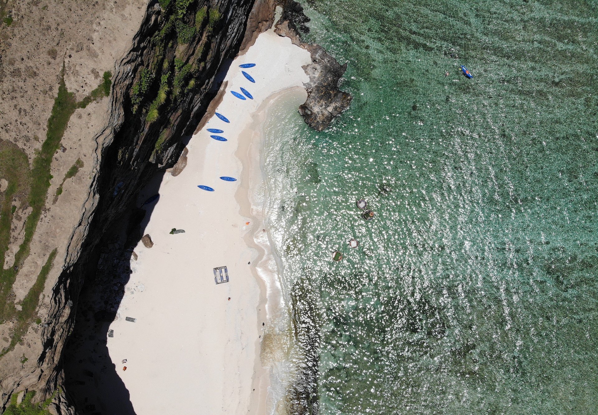 Màu nước trong xanh như ngọc bích nhìn thấy tận đáy biển ở hang Câu – Lý Sơn. (Ảnh: NVCC).