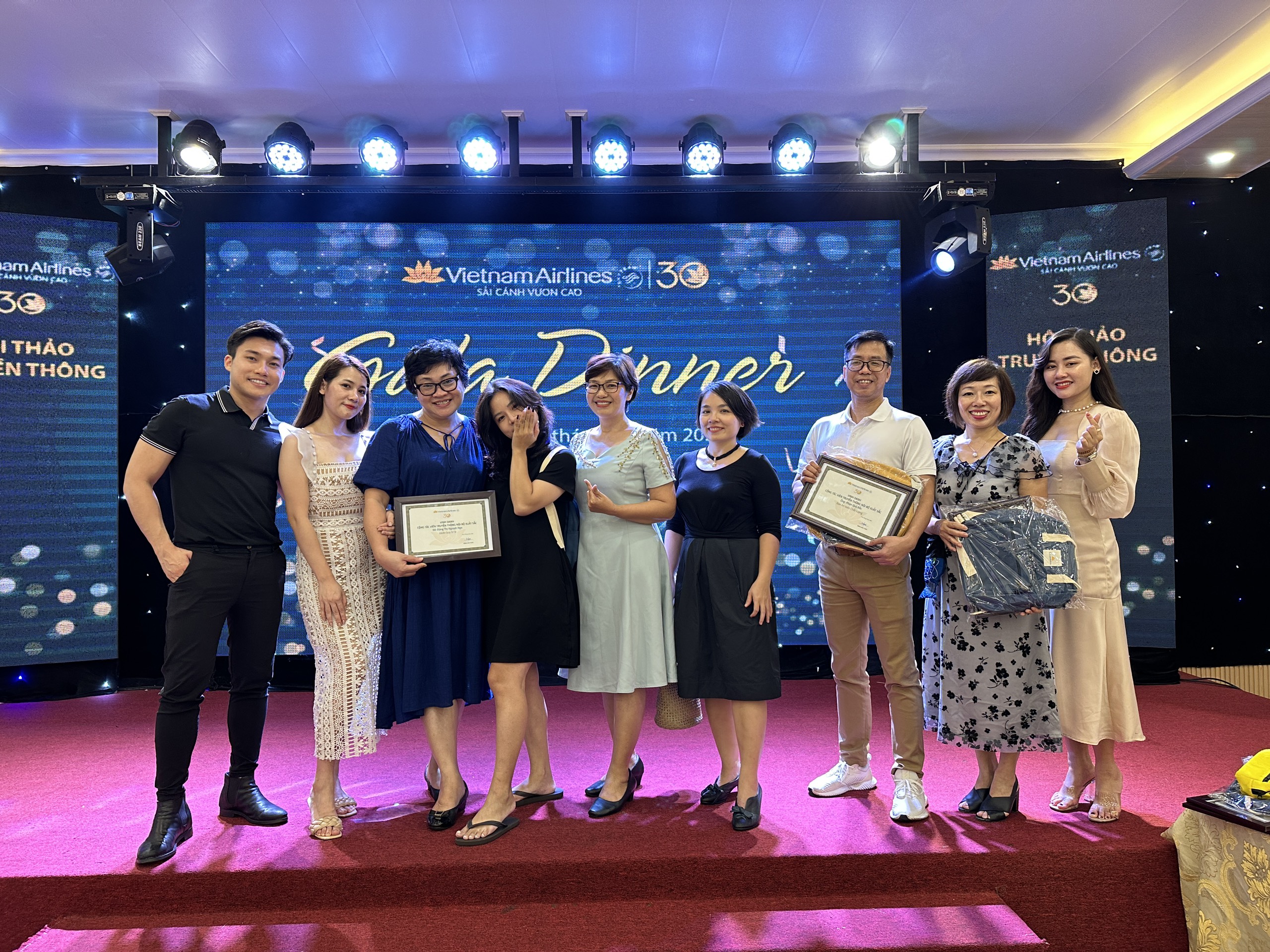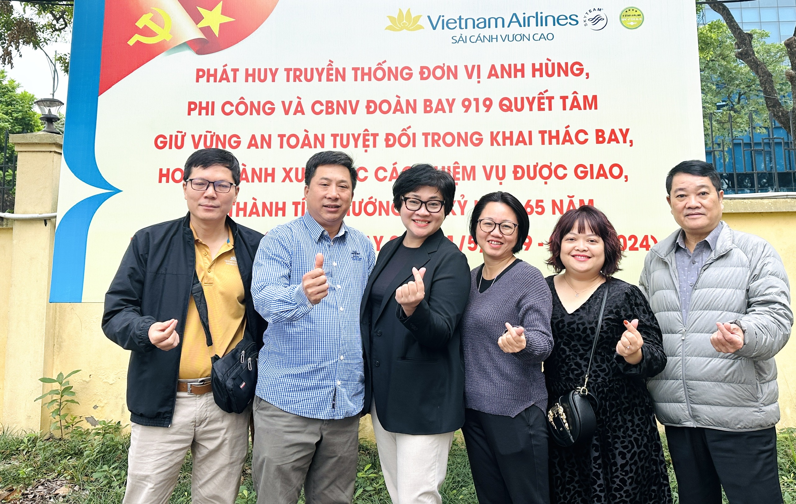 Làm công tác TTNB, chị Đặng Thị Nguyệt Nga (áo đen, đứng giữa) luôn có những người bạn, những người đồng nghiệp sẵn sàng, nồng nhiệt vì màu cờ sắc áo của phi công Đoàn bay 919, của Vietnam Airlines. (Ảnh: NVCC).