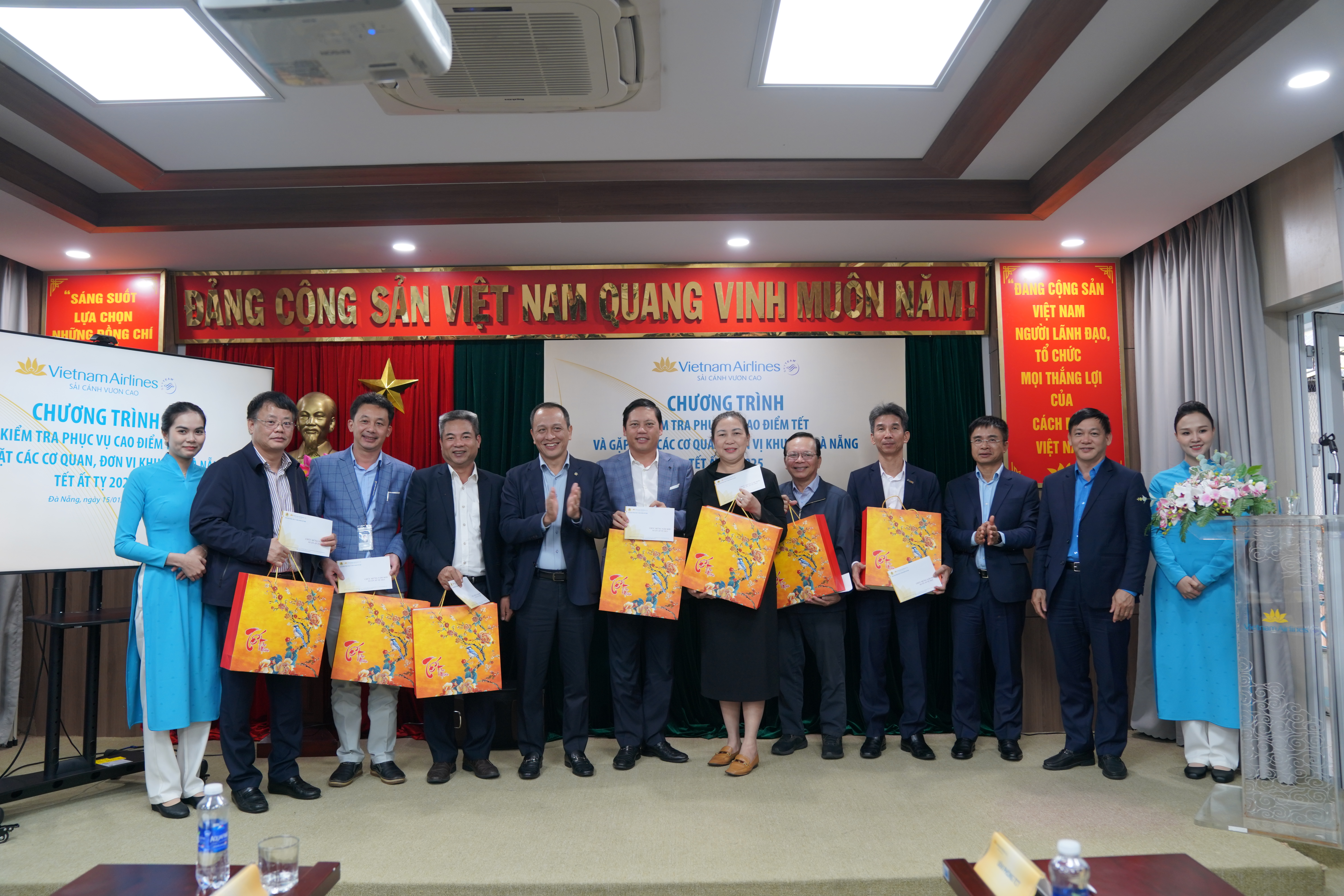 Trước thềm Tết Ất Tỵ, thay mặt lãnh đạo TCT, TGĐ Lê Hồng Hà đã gửi lời chúc sức khỏe và thành công đến các đơn vị, đồng thời trao tặng những phần quà Tết ý nghĩa cho đại diện lãnh đạo các cơ quan, công ty thành viên tại các khu vực Tân Sơn Nhất, Đà Nẵng và Nội Bài. Những món quà này không chỉ thể hiện sự tri ân sâu sắc mà còn khẳng định cam kết của TCT đối với việc xây dựng môi trường làm việc gắn kết, sẻ chia trong suốt năm qua.