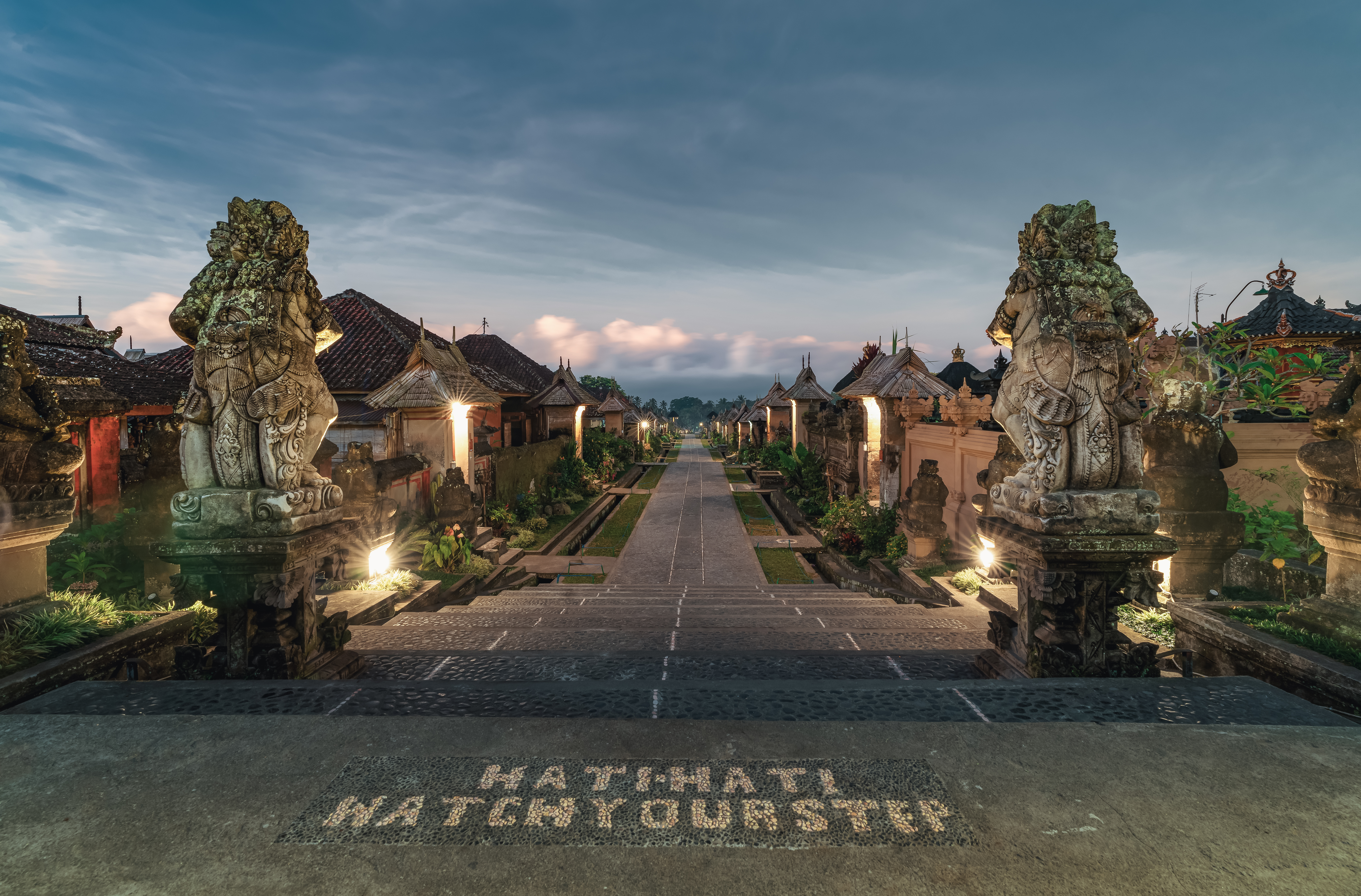 Từ 17 giờ chiều trở đi, ngôi làng trở nên vắng vẻ và nhiệt độ cũng lạnh dần trả lại cho Penglipuran sự bình yên, trầm mặc trong không khí phảng phất mùi trầm hương tỏa ra từ những ngôi đền. Sau khóa lễ, người dân bắt đầu vui chơi nhộn nhịp. Đến với Penglipuran, bạn có thể lưu trú ngay tại làng để trải nghiệm cuộc sống tối giản và sạch sẽ ở một số homestay. Nếu chọn phương án này, bạn càng có cơ hội hòa mình với người dân thân thiện và mến khách nơi này.