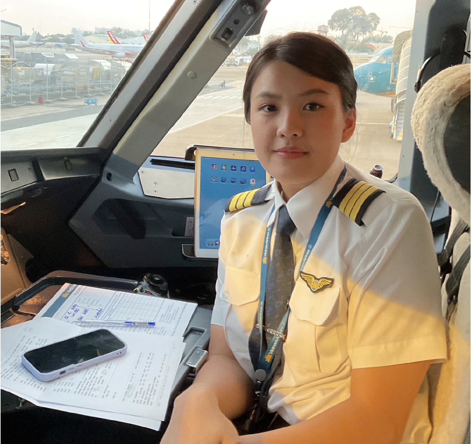 Tuy nhiên, từng được bay cùng nhiều cơ trưởng nữ đã có gia đình, con cái, cô gái trẻ gốc Đà Nẵng nhận thấy các đàn chị đều luôn chu toàn cả việc nhà lẫn công việc. Điều đó giúp cô có thêm động lực để nỗ lực, phấn đấu tiến xa hơn trên bầu trời rộng mở.