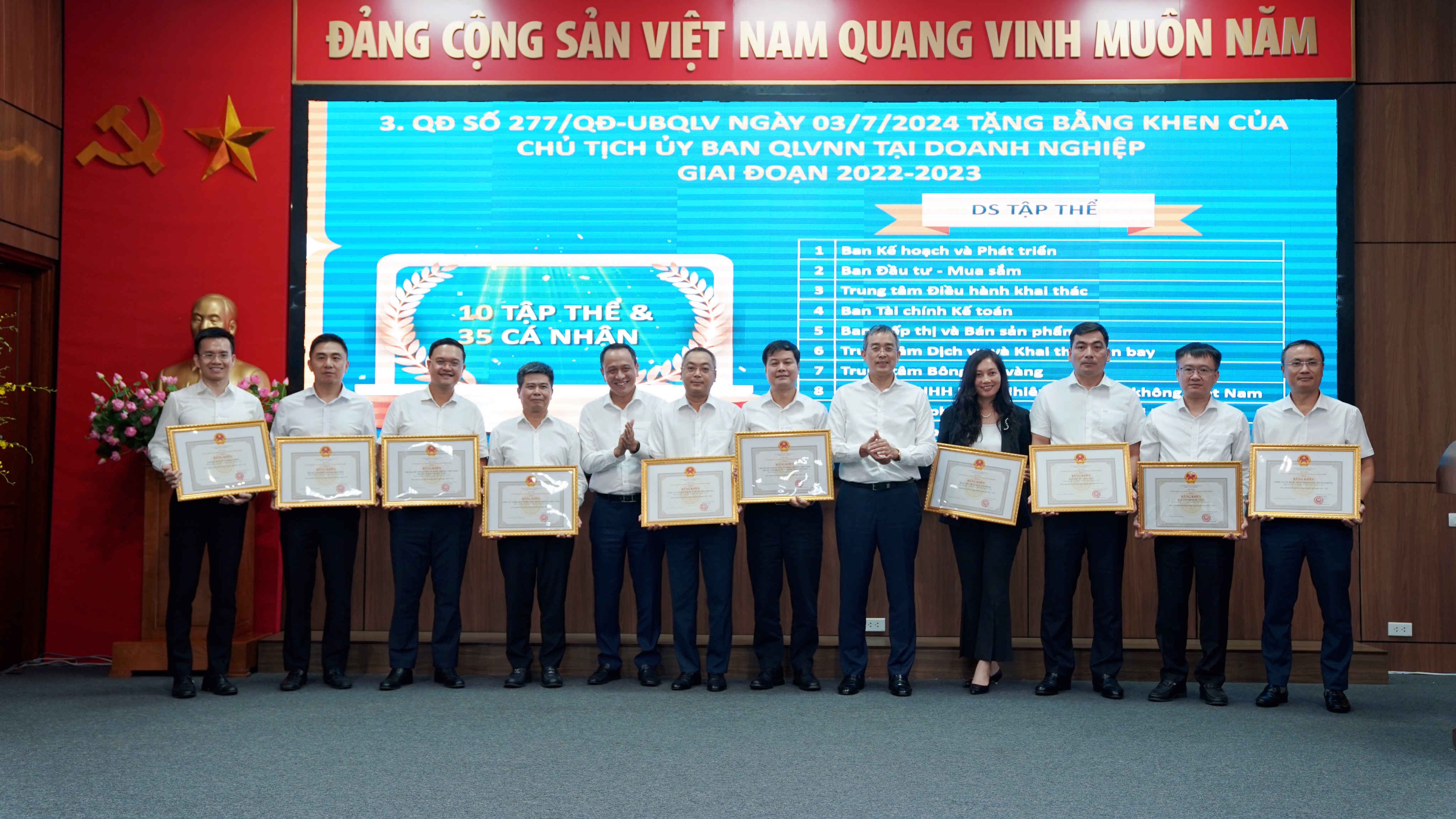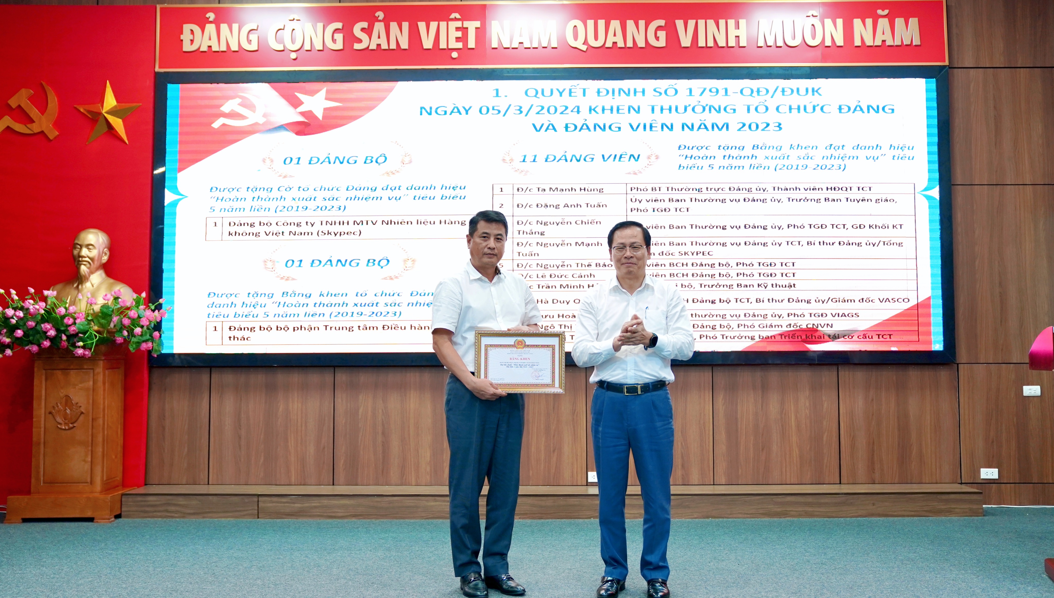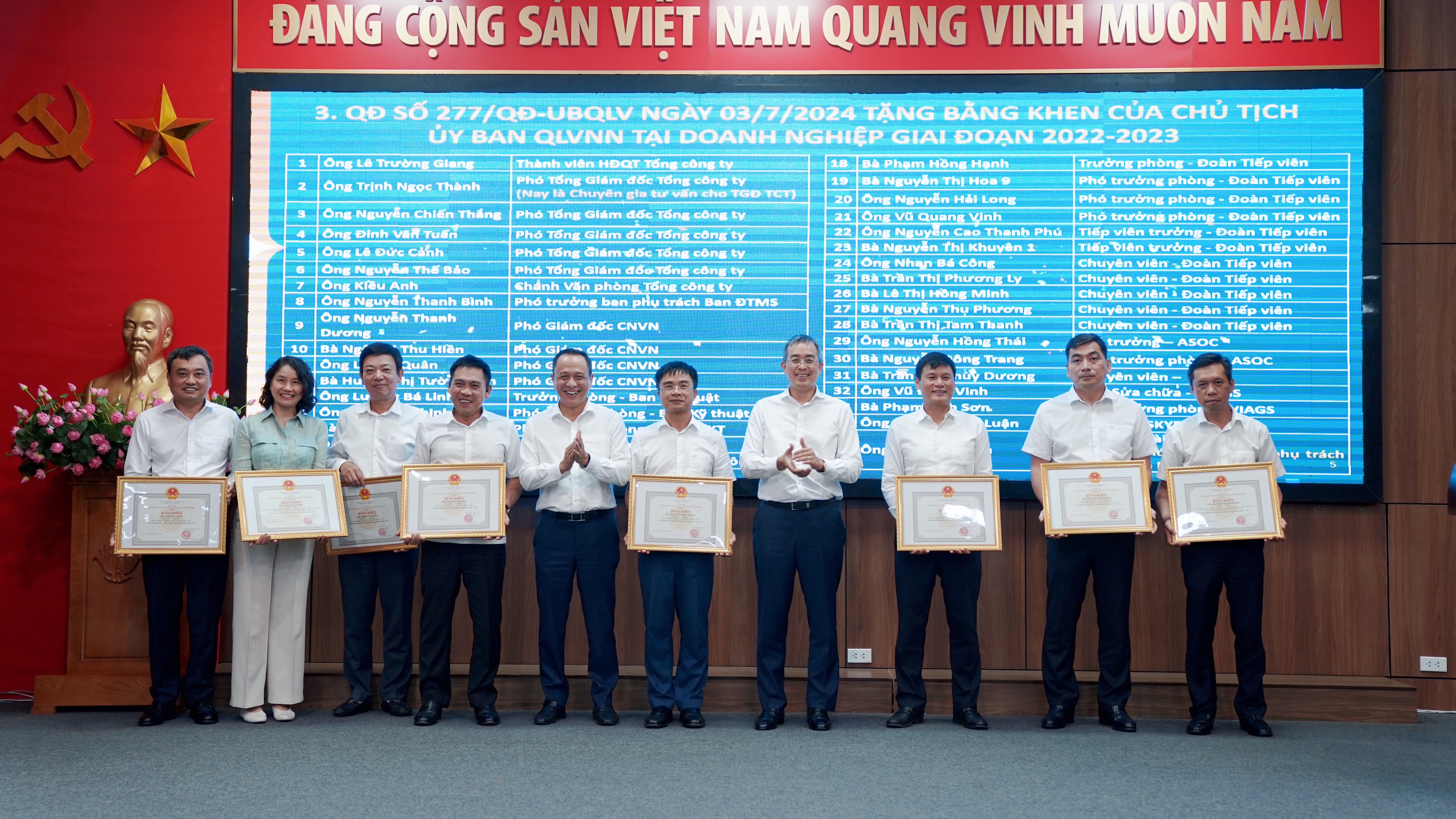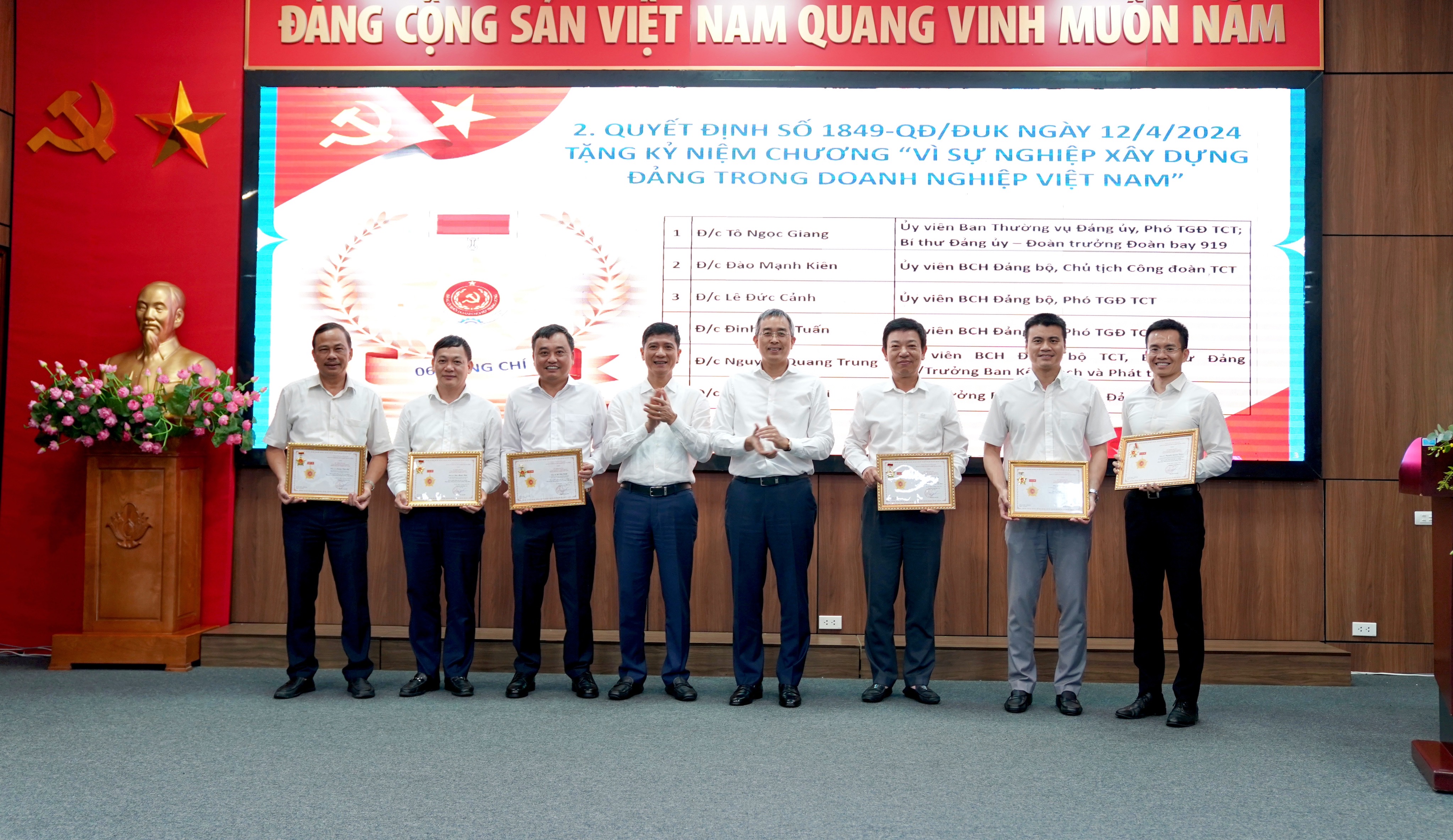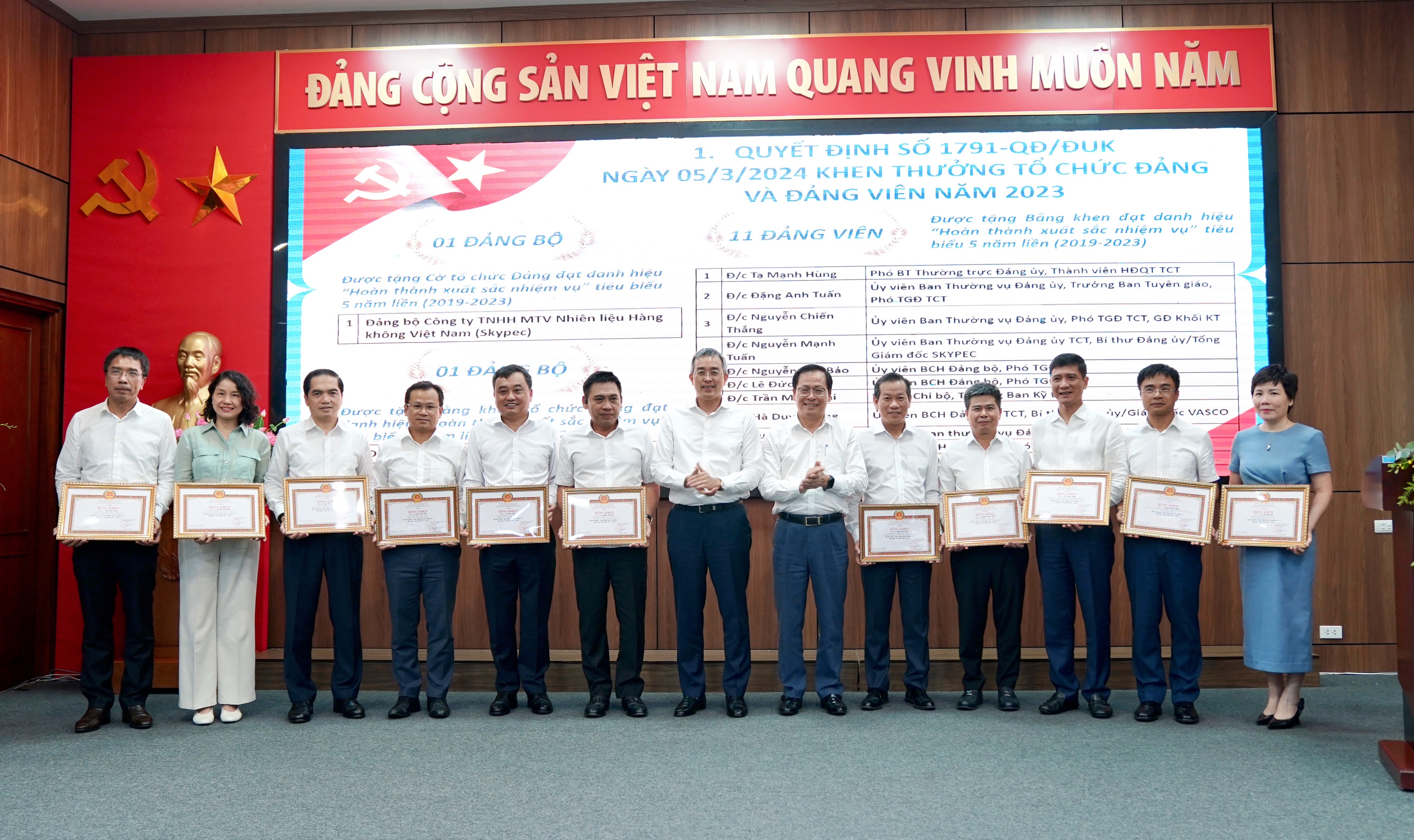 Kết thúc hội nghị, TCT đã tổ chức Lễ trao tặng các hình thức khen thưởng của Đảng ủy khối khối doanh nghiệp Trung ương cho các đại diện các CQĐV, tập thể và các cá nhân đạt thành tích xuất sắc.