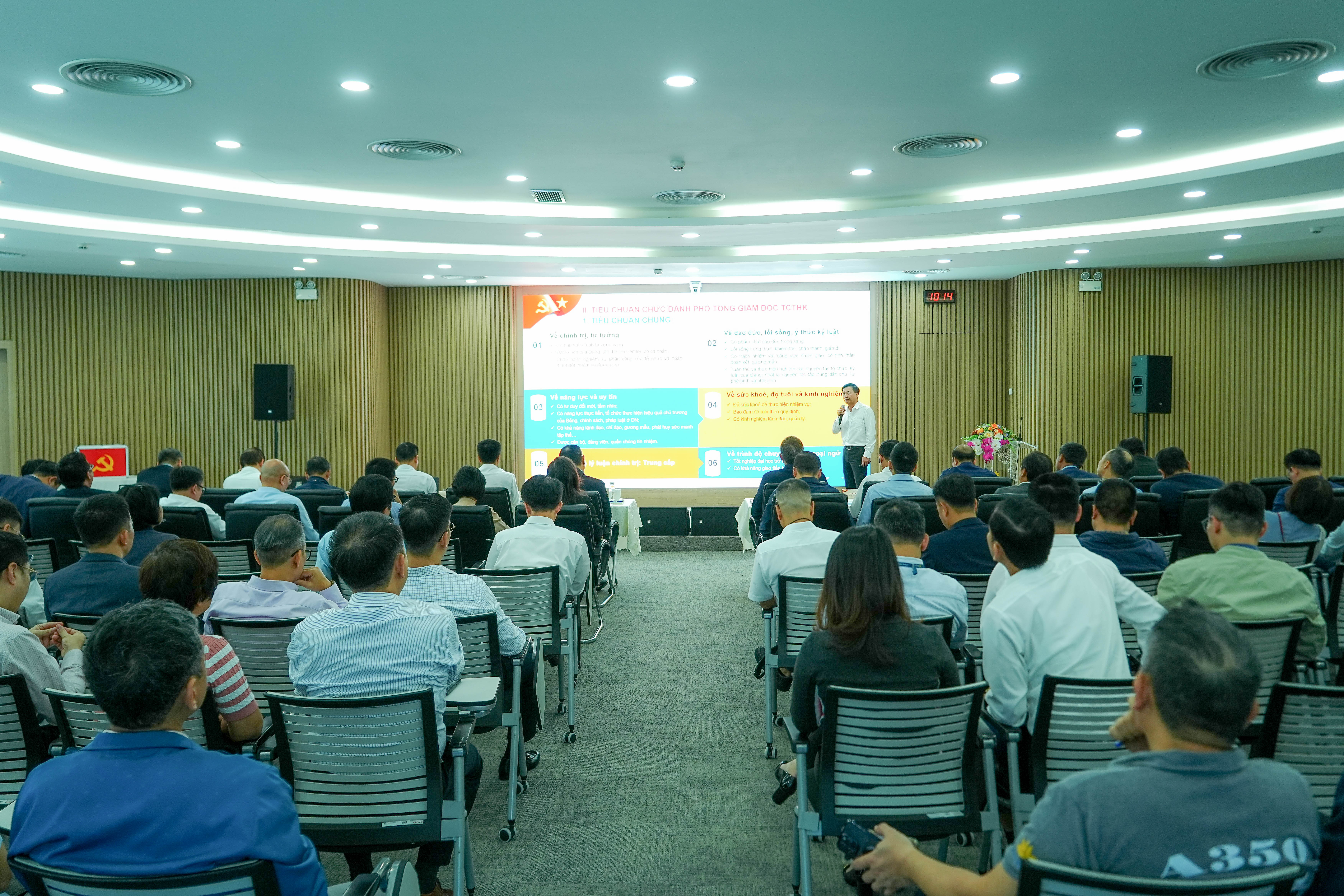 Tại các Hội nghị giới thiệu nhân sự kiện toàn nhân sự các chức danh Đảng ủy, các đại biểu đã nghe báo cáo tóm tắt về yêu cầu kiện toàn đội ngũ cán bộ chủ chốt của Đảng bộ TCT trong nhiệm kỳ mới cùng các căn cứ, tiêu chuẩn và điều kiện đối với nhân sự được giới thiệu, hướng tới kiện toàn đội ngũ cán bộ đủ phẩm chất, năng lực và uy tín để đảm nhiệm trọng trách trong giai đoạn phát triển 2025–2030.