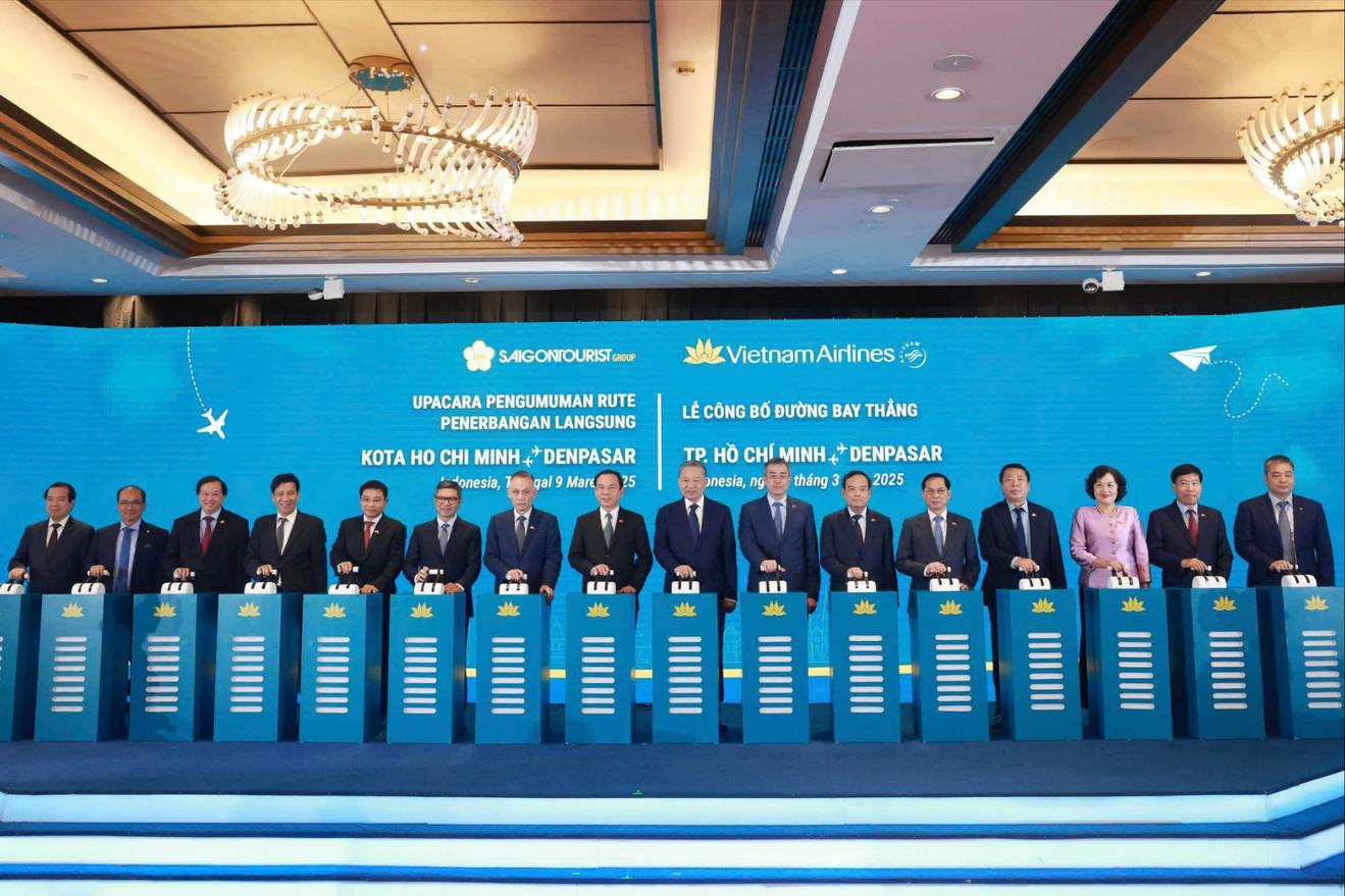 Ngày 09/03/2025, nhân chuyến thăm chính thức cấp nhà nước của Tổng Bí thư Tô Lâm và phu nhân đến Indonesia, Vietnam Airlines đã tổ chức thành công lễ công bố đường bay mới nối Thành phố Hồ Chí Minh và thủ phủ Denpasar, kết hợp chương trình xúc tiến du lịch Việt Nam – Indonesia. Chương trình có sự tham dự và chứng kiến của Tổng Bí thư, đoàn công tác cấp cao của Việt Nam và các cơ quan, nhà chức trách liên quan của phía Indonesia cùng các đối tác, bạn hàng, đại lý, truyền thông tại thị trường. Bên cạnh đó, Vietnam Airlines còn triển khai chương trình giá khuyến mại đặc biệt trong giai đoạn mở đường bay mới từ 01-15/06/2025.