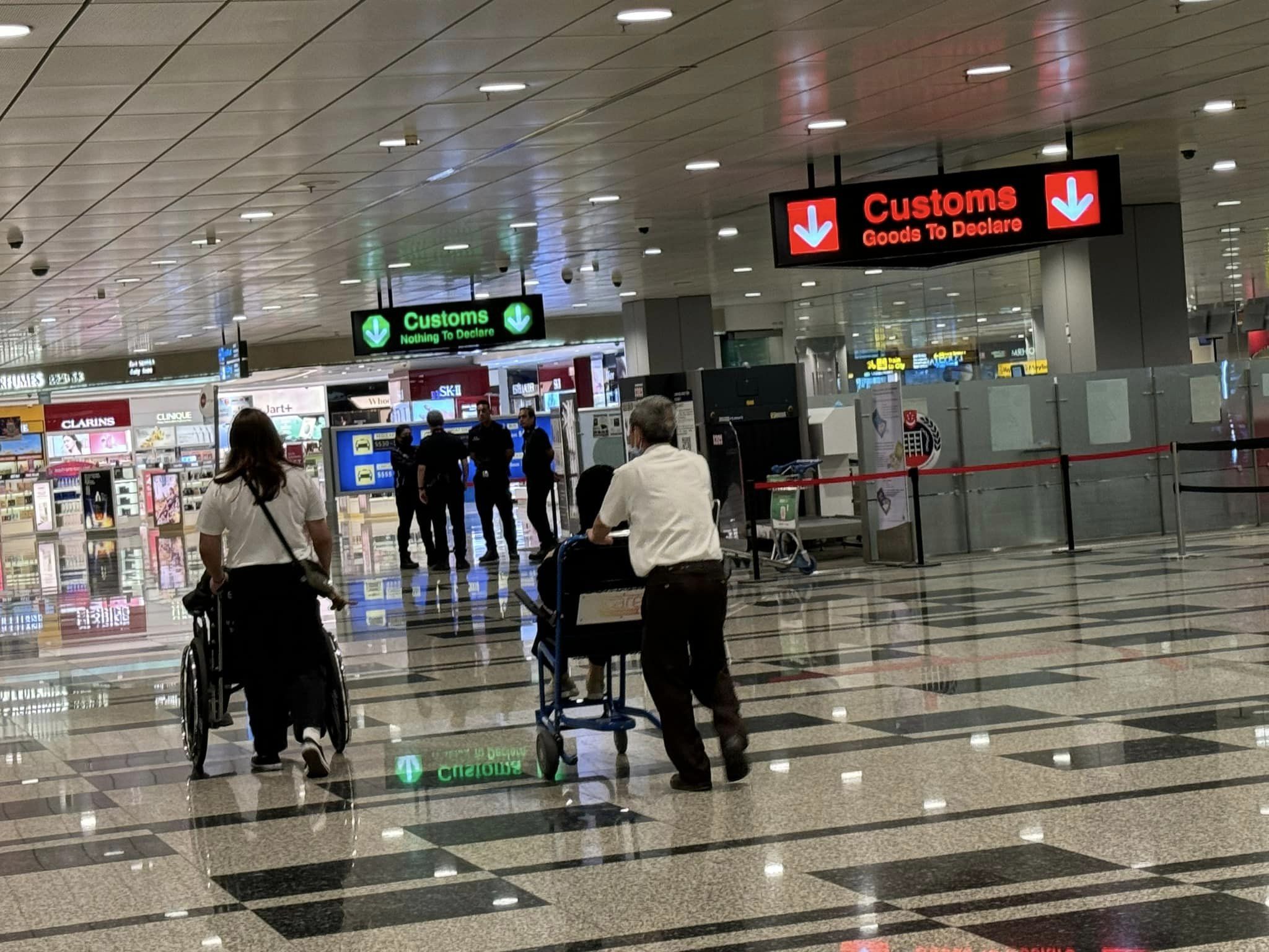 Sau khi hạ cánh tại sân bay Changi, hai bác được hai nhân viên mặt đất hỗ trợ di chuyển từ máy bay, qua khu vực nhập cảnh, chuyển terminal và ra đến khu vực lấy hành lý. Nhờ sự hỗ trợ tận tình này, gia đình anh Chánh đã có một hành trình trọn vẹn và an toàn.