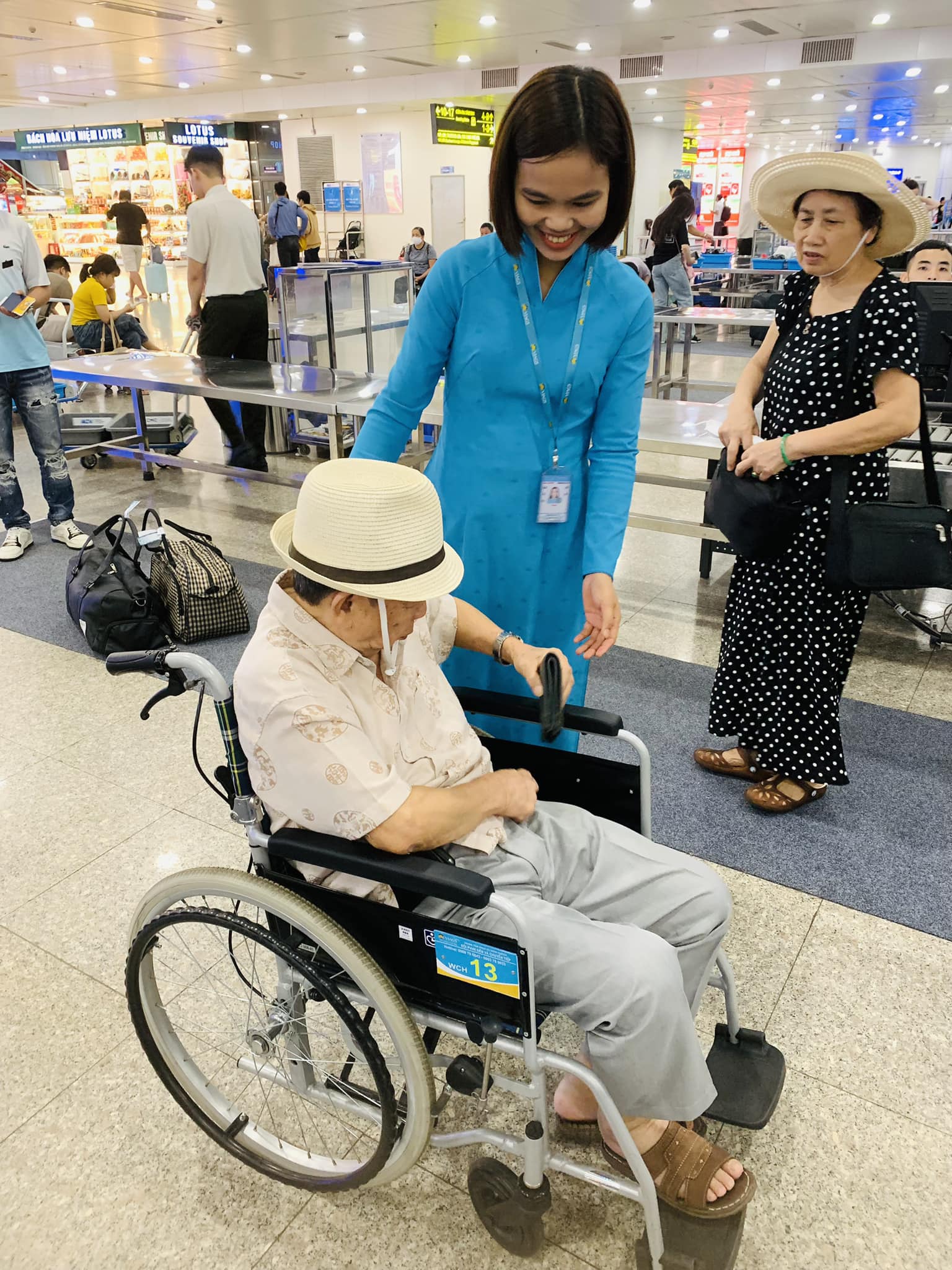 Còn nhớ như in, đó là một ngày nắng oi ả. Tôi được nhận nhiệm vụ đưa một hành khách đau chân qua cửa an ninh, đến cửa ra máy bay. Bác khá cao tuổi và cũng vừa gãy chân được khoảng một tuần bởi thế việc đi lại khá khó khăn. Khi thấy tôi đem xe lăn đến, cẩn thận cài phanh, nâng tấm để chân, mời bác lên xe, bác mừng lắm. Tôi giúp bác lên xe cùng túi đồ cá nhân. Đưa bác qua cửa an ninh ưu tiên rồi tôi nhanh chóng cho hành lý của bác qua an ninh soi chiếu và đến cửa ra máy bay. Bác chia sẻ với tôi: “Bác vui lắm, ban đầu bác cứ ái ngại mãi vì đi một mình, không biết đi lại ra làm sao, hành lý thì cồng kềnh. Đến may là gặp được các cháu nhiệt tình giúp đỡ bác. Không có các cháu, bác chẳng biết phải làm sao. Thế của bác hết bao nhiêu tiền cho bác gửi?”. Tôi nhẹ nhàng cười đáp: “Bác ơi dịch vụ này của hãng hàng không Vietnam Airlines là hoàn toàn không mất phí bác ạ! Hễ khi nào đi máy bay mà cần, bác cứ báo trước từ khi mua vé hoặc báo lại với chúng cháu khi làm thủ tục nhé!”.
