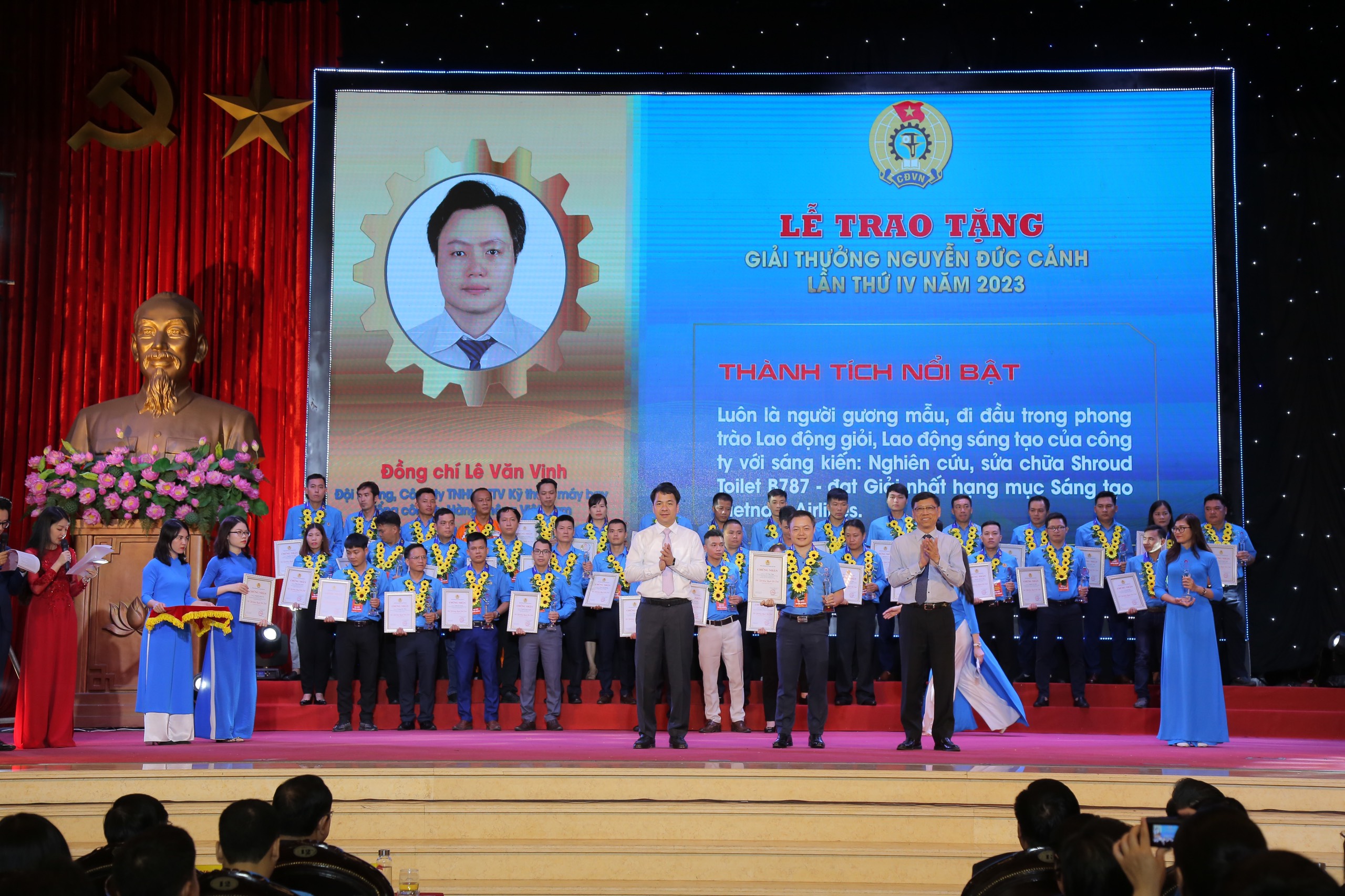 Tại giải thưởng Nguyễn Đức Cảnh năm nay, Công đoàn TCT Hàng không Việt Nam vinh dự có 02 cá nhân thuộc các công đoàn cơ sở được vinh danh trao thưởng.