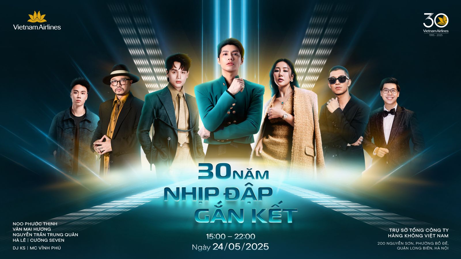 Đặc biệt, trong đêm nhạc chủ đề “Nhịp đập gắn kết”, các CBNV sẽ được hòa mình vào không gian âm nhạc sôi động với sự góp mặt của nhiều nghệ sĩ được đông đảo khán giả yêu mến như Noo Phước Thịnh, Văn Mai Hương, Nguyễn Trần Trung Quân, Hà Lê, Cường Seven, cùng DJ KS và MC Vĩnh Phú. Dàn nghệ sĩ trẻ trung, giàu năng lượng hứa hẹn sẽ mang đến một đêm nghệ thuật bùng nổ cảm xúc, đậm chất Vietnam Airlines – chuyên nghiệp, gắn kết và truyền cảm hứng.
