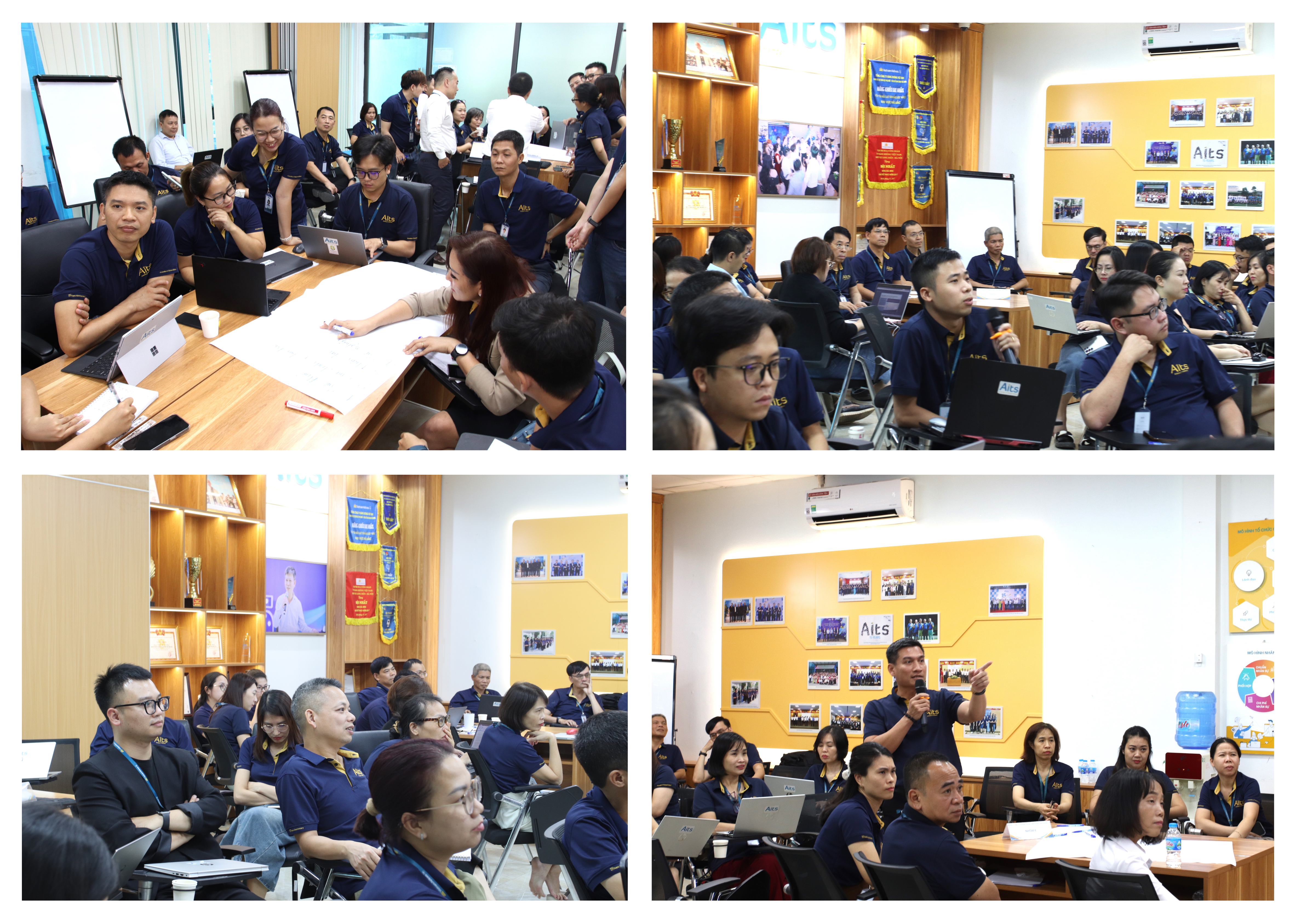 Đặc biệt, trong khuôn khổ chương trình đào tạo, Tổng Giám đốc Nguyễn Tuấn Anh đã kết hợp, áp dụng những kiến thức của Giảng viên để đưa ra những đề bài, tình huống, case study đã và đang diễn ra hàng ngày tại AITS để học viên có thể dễ dàng liên hệ, áp dụng vào thực tế. Bắt đầu từ việc đồng hành cùng các cán bộ nhân viên hướng tới tầm nhìn, sứ mệnh của Công ty, định hình được giá trị văn hóa và xây dựng nền tảng để phát triển.