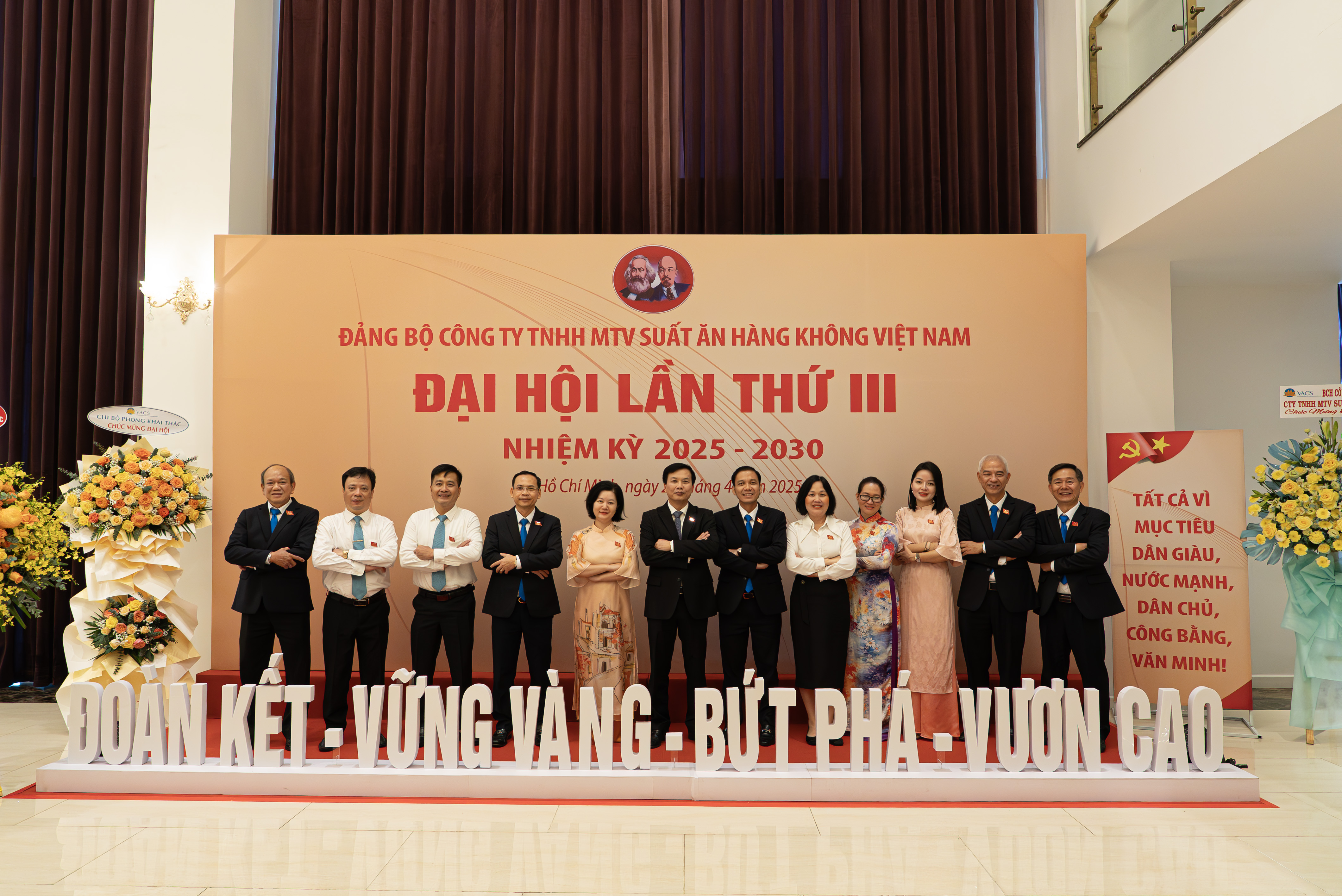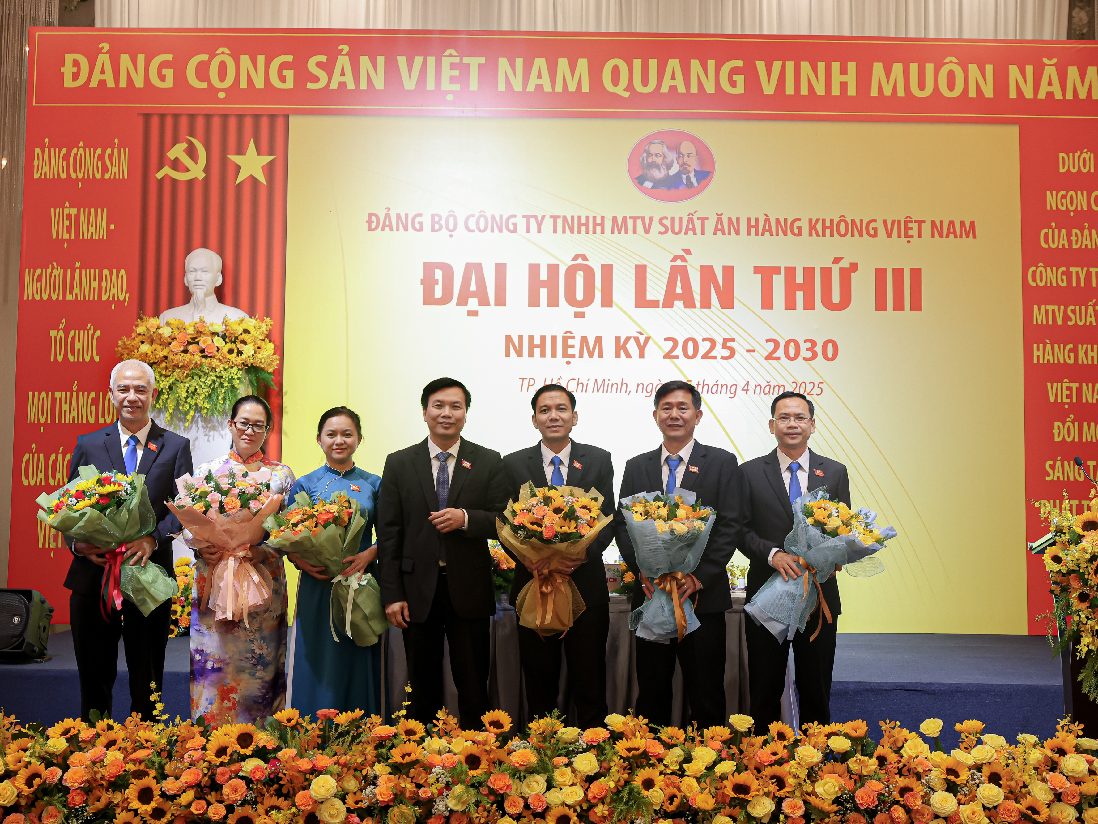 Đại hội đã bầu sáu đồng chí tham gia Ban Chấp hành Đảng bộ Công ty TNHH MTV Suất ăn hàng không Việt Nam nhiệm kỳ 2025-2030. Tại phiên họp lần thứ nhất, Ban chấp hành đã bầu đồng chí Hoàng Xuân Hiệp tiếp tục giữ chức Bí thư Đảng ủy, đồng chí Vũ Mạnh Phú giữ chức Phó Bí thư Đảng ủy.