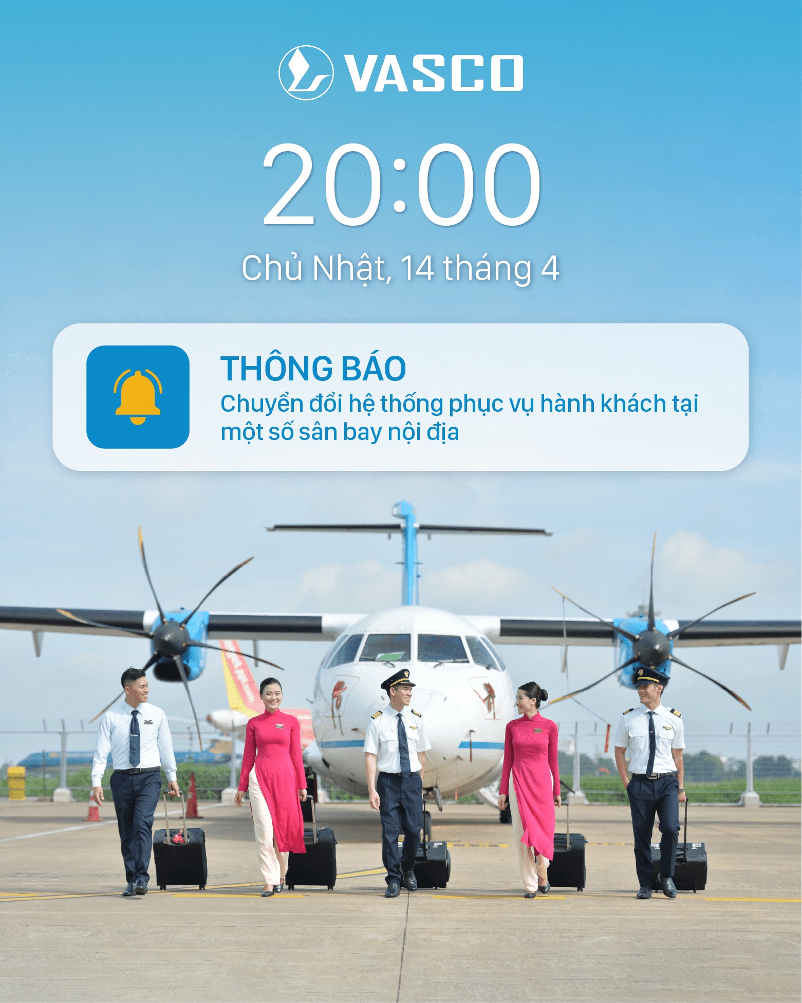 VASCO rất mong nhận được sự thông cảm và hợp tác của Quý khách. Để cập nhật thông tin chuyến bay và được hỗ trợ trực tiếp, Quý khách vui lòng truy cập website https://www.vasco.com.vn/; fanpage chính thức https://www.facebook.com/FanpageVASCO; các phòng vé, đại lý chính thức và tổng đài chăm sóc khách hàng 028 38 330 330.