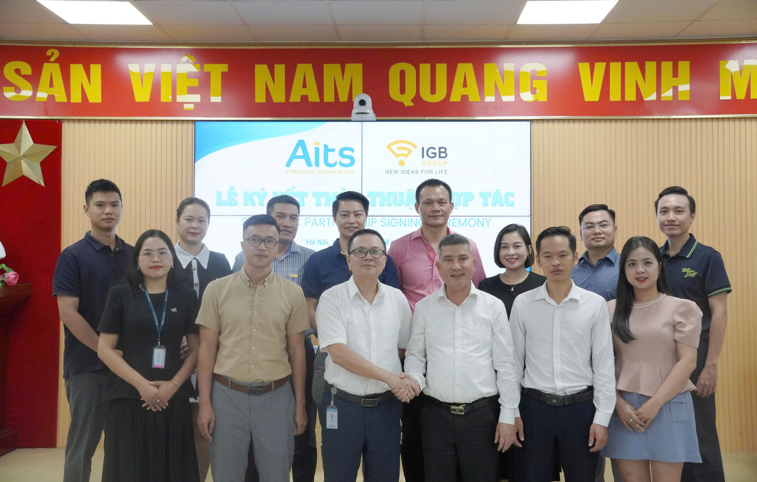 Buổi lễ có sự tham dự của ông Nguyễn Tuấn Anh – Tổng Giám đốc AITS; ông Đào Việt Dũng – Phó Tổng Giám đốc khối Kinh doanh – Phát triển sản phẩm (KD – PTSP) cùng các thành viên chủ chốt của AITS. Phía IGB Group, ông Vũ Xuân Nguyên – Chủ tịch HĐQT, ông Nguyễn Văn Thái – Tổng Giám đốc cùng các thành viên chủ chốt. Sự hiện diện đông đủ của lãnh đạo cấp cao hai bên đã khẳng định tầm quan trọng của sự kiện và cam kết hợp tác chặt chẽ trong giai đoạn tới.
