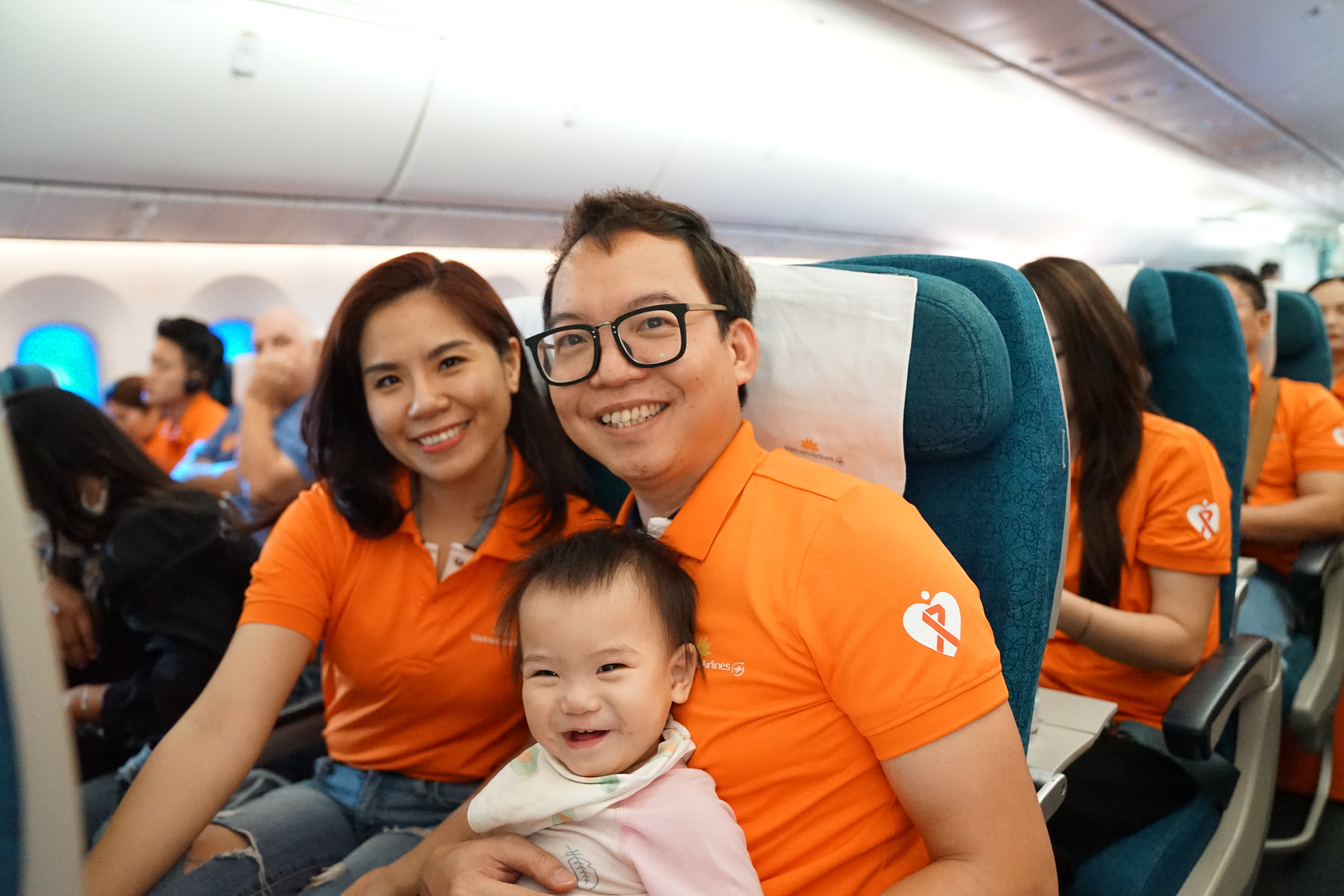 Do đó, sau khi tiếp nhận thông điệp từ phi hành đoàn, nhận món quà màu cam từ Vietnam Airlines, các hành khách đã rất vui vẻ cùng thay màu áo của mình bằng màu cam, thể hiện sự chung sức của mình với thông điệp của chuyến bay. Đây là sự ghi nhận và là thành công của các bạn!.