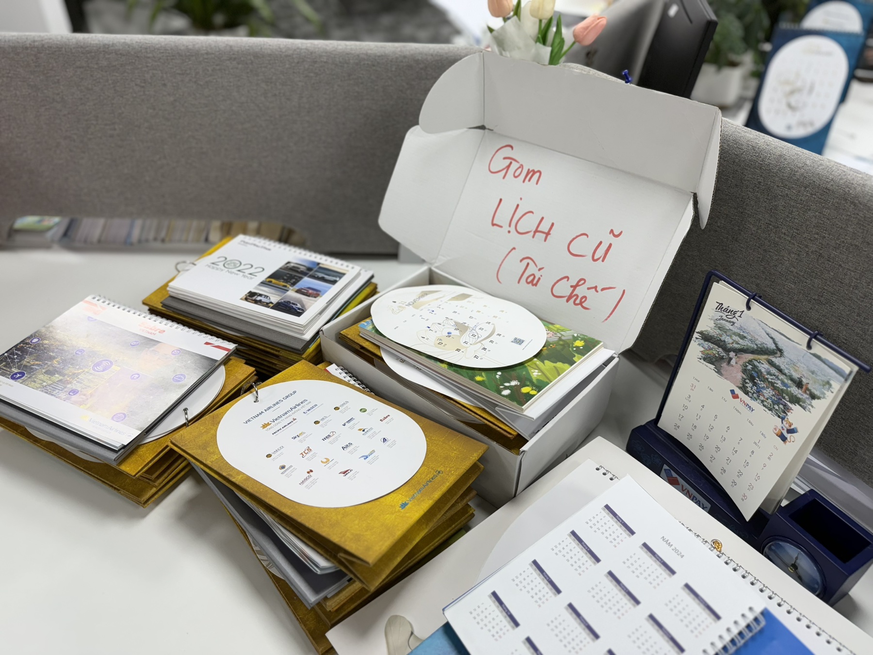 Hưởng ứng chương trình thu gom lịch cũ do Green Life – tổ chức tiên phong tại Hà Nội về bảo vệ môi trường – phát động, Ban TTBSP đã chung tay quyên góp và gửi tặng 3 thùng lịch cũ. Những tờ lịch 2024 tưởng chừng như đã hoàn thành vai trò của mình nay sẽ được “hồi sinh” thành những bao lì xì, thẻ đeo, phiếu sao, và các ấn phẩm truyền thông ý nghĩa.