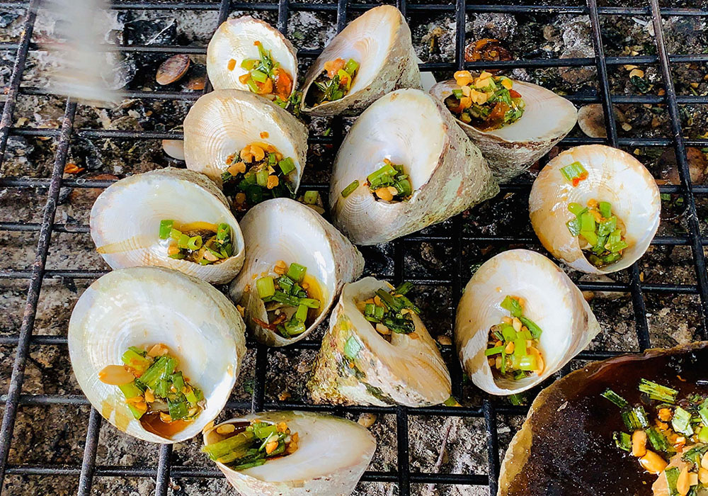 Hải sản Côn Đảo bạn nên tìm thưởng thức là ốc vú nàng, ốc nón, ốc tai tượng, ốc bàn tay, tôm hùm đỏ, tôm mũ ni, cá mú đỏ, mực một nắng… và các loại cá biển.