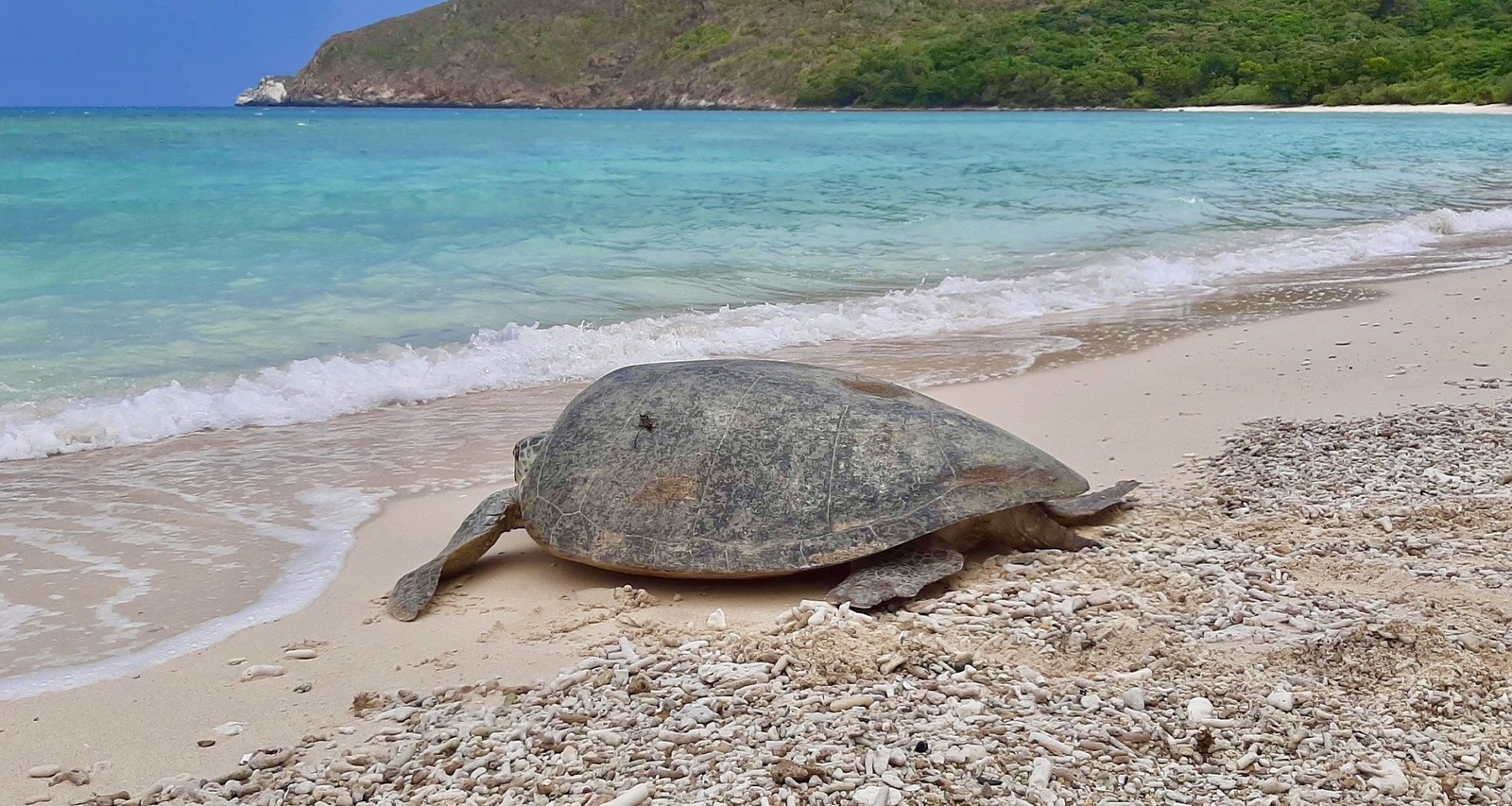 Hòn Tre Lớn có bãi cát trắng mịn, tập trung nhiều rùa biển lên đẻ trứng (xếp thứ hai sau bãi Cát Lớn, Hòn Bảy Cạnh).
