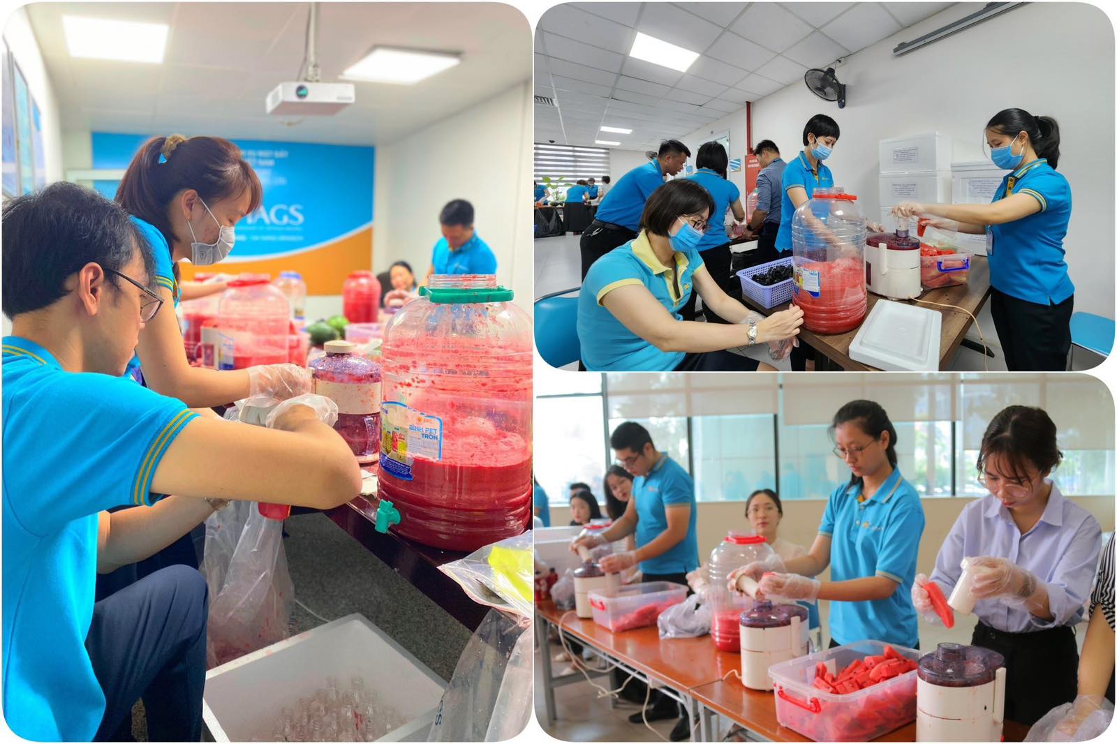 “Trách nhiệm và quyết tâm” đó là hai từ thể hiện rõ nhất không khí và tinh thần anh chị em những ngày qua. Tuy đây không phải là lần đầu tiên mỗi người trong chúng tôi làm công việc ép nước hoa quả, nhưng để cùng nhau phối hợp nhịp nhàng, thao tác chuẩn chỉnh, đảm bảo an toàn vệ sinh thực phẩm cho từng chai nước ép chất lượng, mát lạnh, tươi ngọt thì hết thảy chúng tôi đều chăm chút và hết lòng ngay từ lúc làm quen ban đầu cho đến khi bắt nhịp công việc và nhanh chóng thành thục trong tất cả công đoạn…