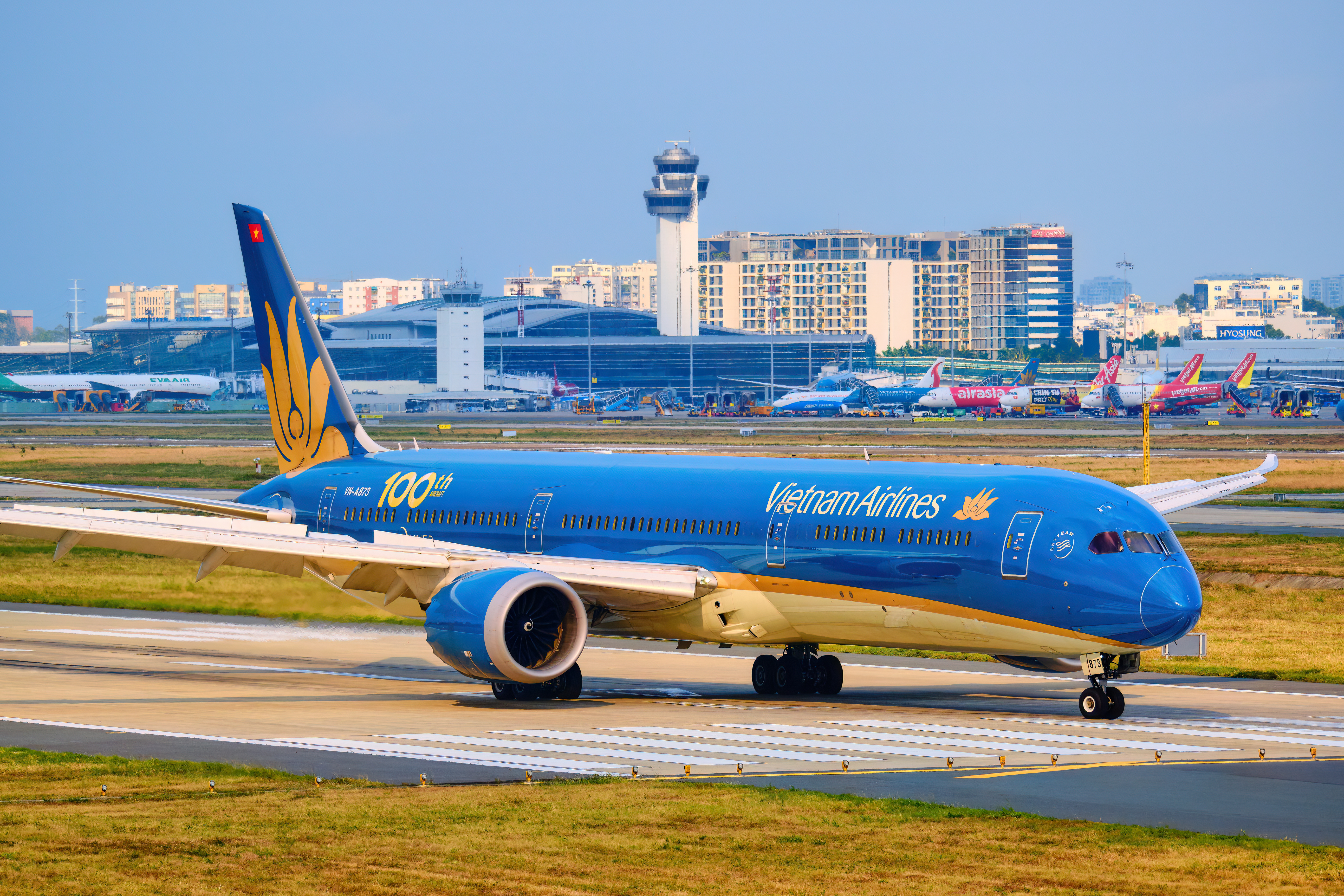Ảnh 1: Đôi cánh thứ 100 lăn bánh dưới ánh nắng chiều tà