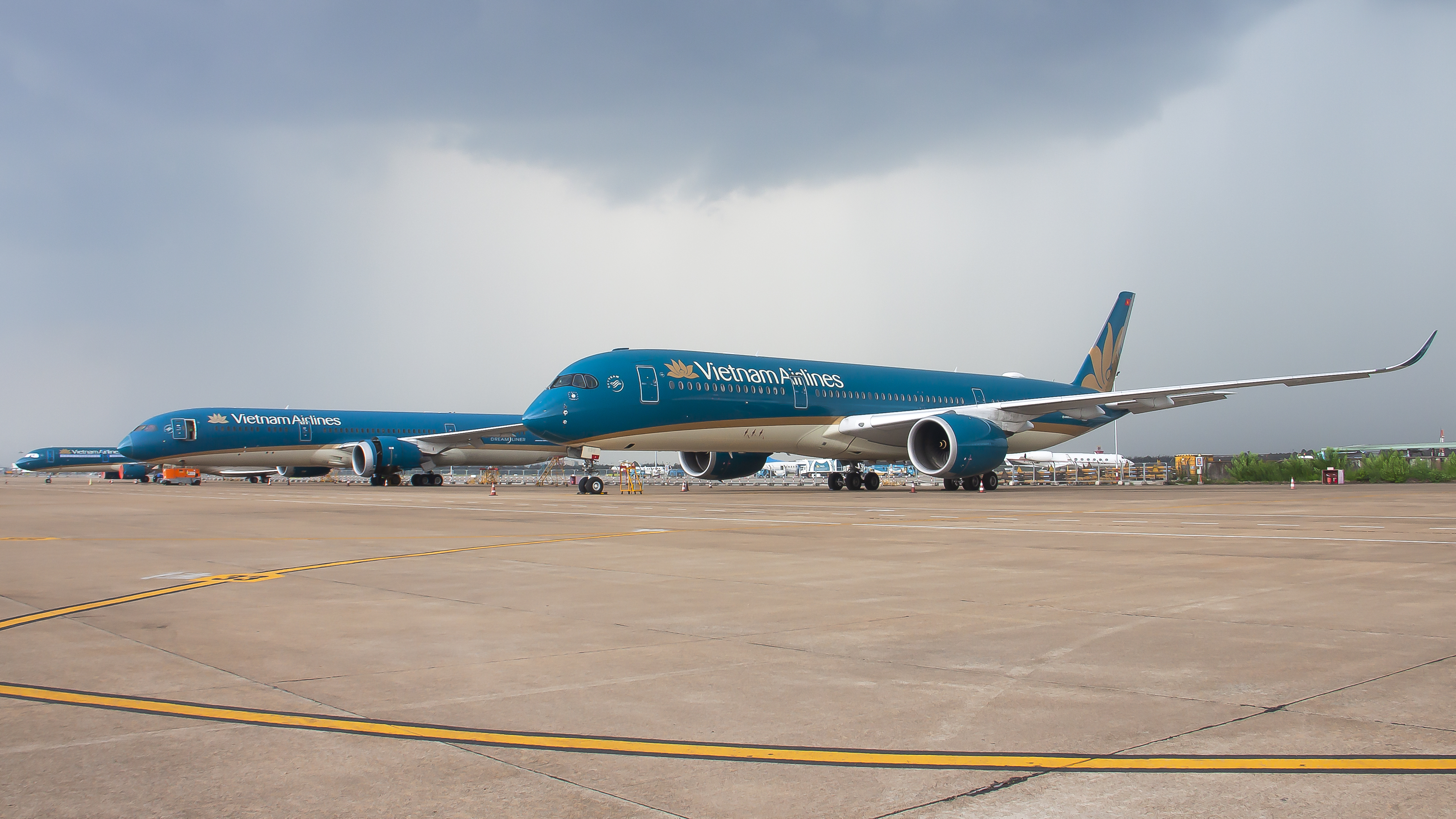 Ảnh 3: Dàn máy bay của Vietnam Airlines trên sân đỗ tại sân bay Tân Sơn Nhất.