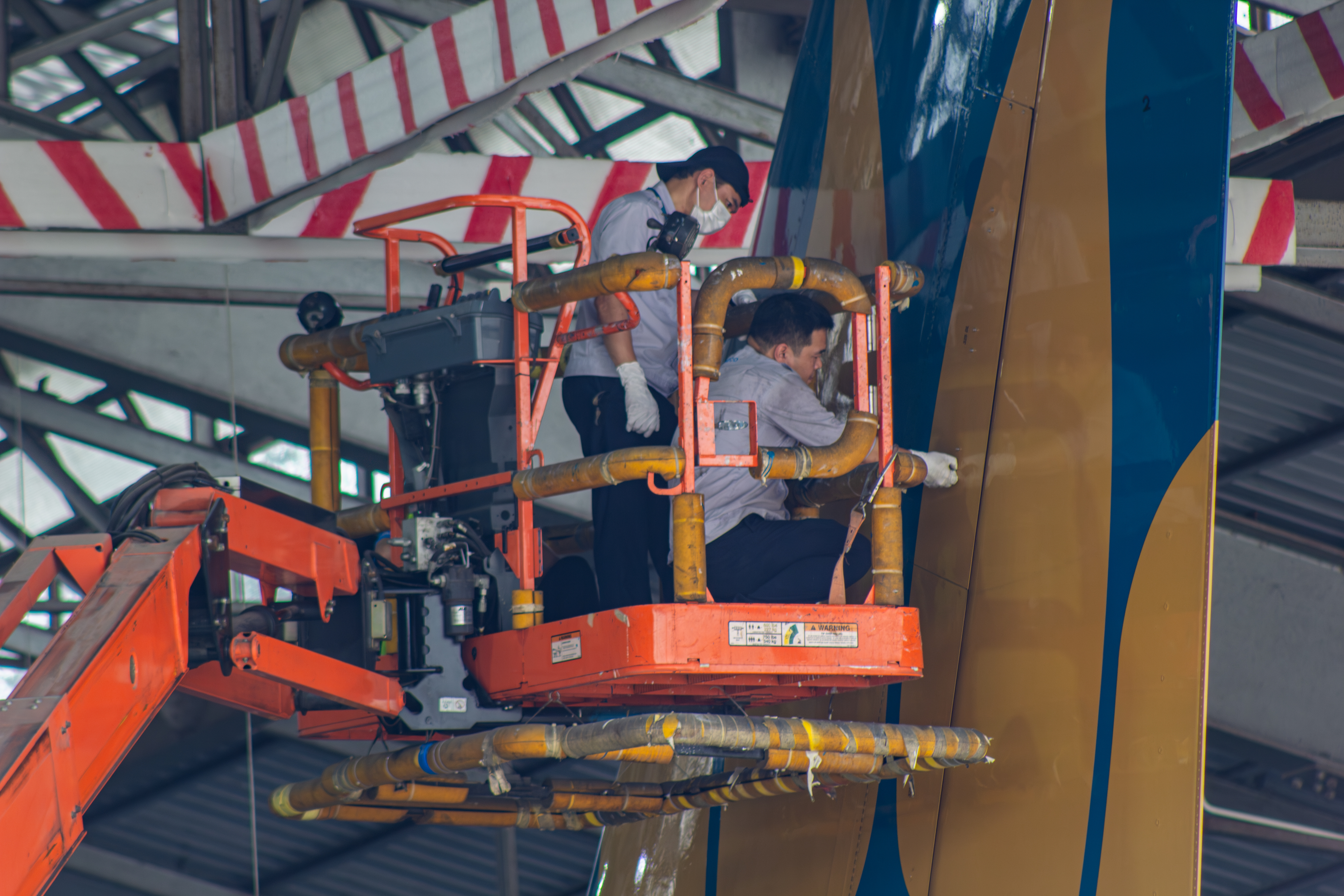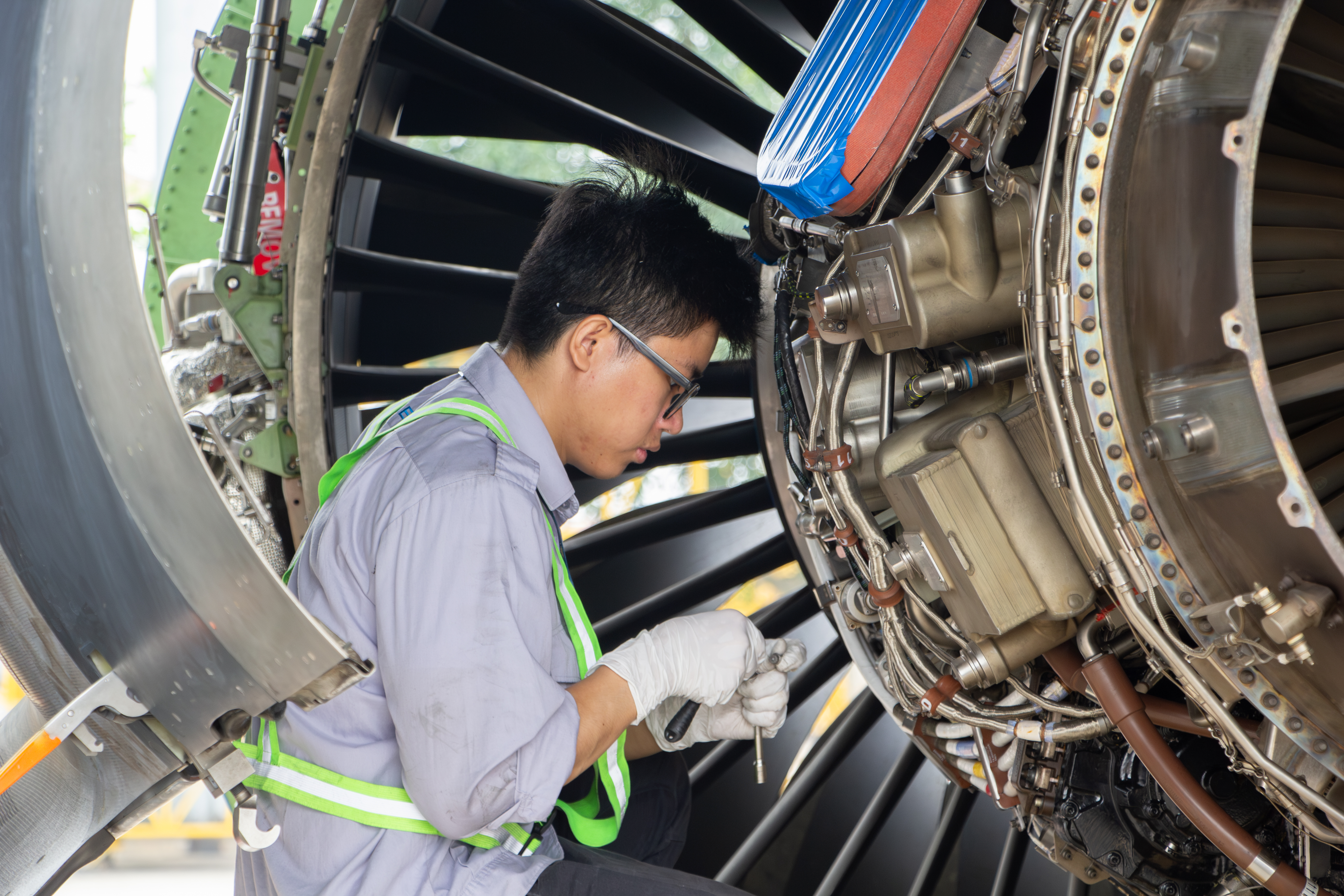 Ảnh 3: Kỹ thuật viên VAECO kiểm tra hệ thống ống dẫn dưới động cơ