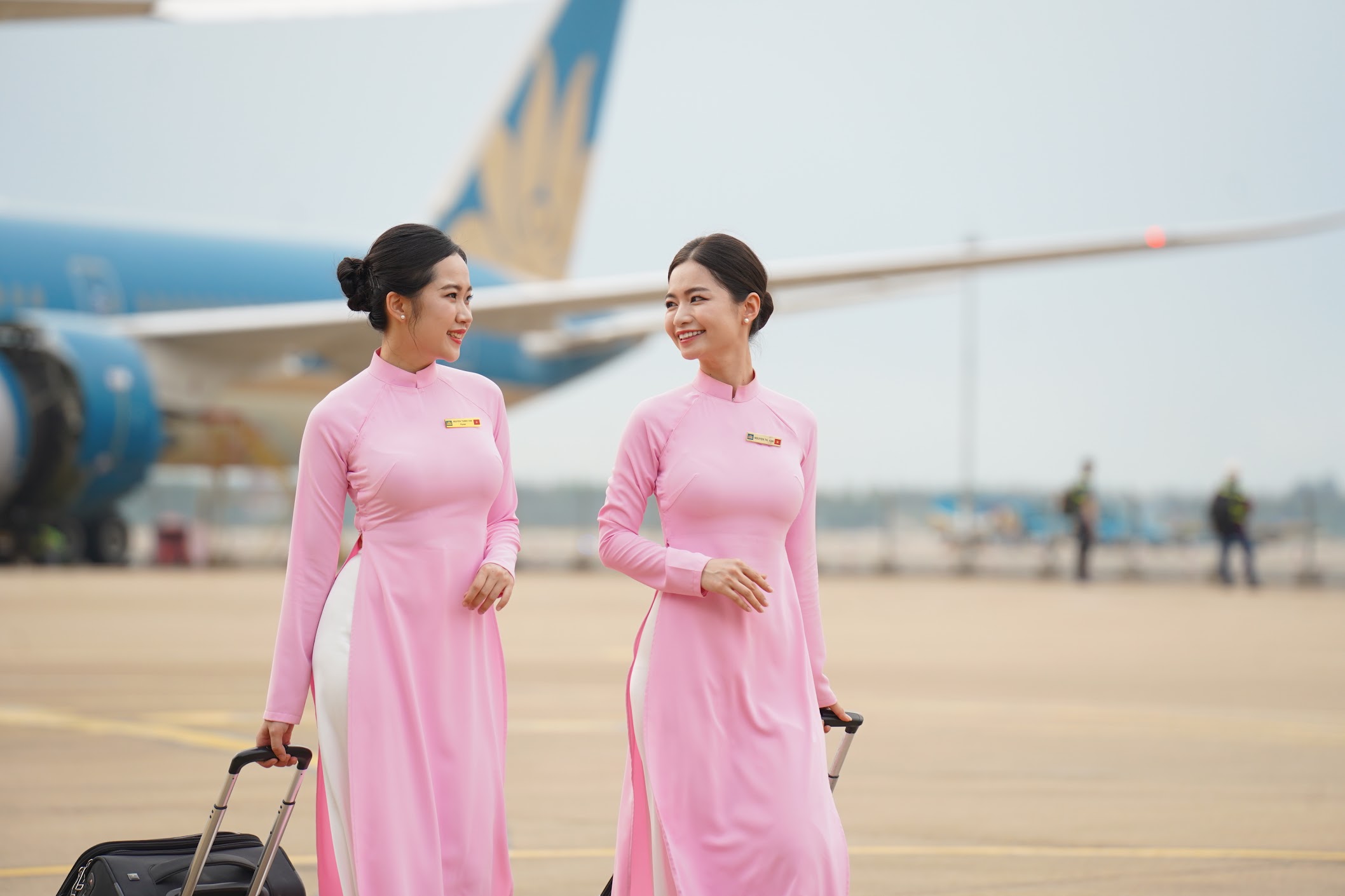 Kể từ năm 2021, đồng phục áo dài của Vietnam Airlines kết hợp màu xanh và vàng, màu sắc được phân chia theo vị trí và cấp bậc của từng người. Cụ thể, đối với vị trí tiếp viên phục vụ khoang thương gia sẽ có màu vàng, vị trí tiếp viên khoang phổ thông có đồng phục màu xanh ngọc.