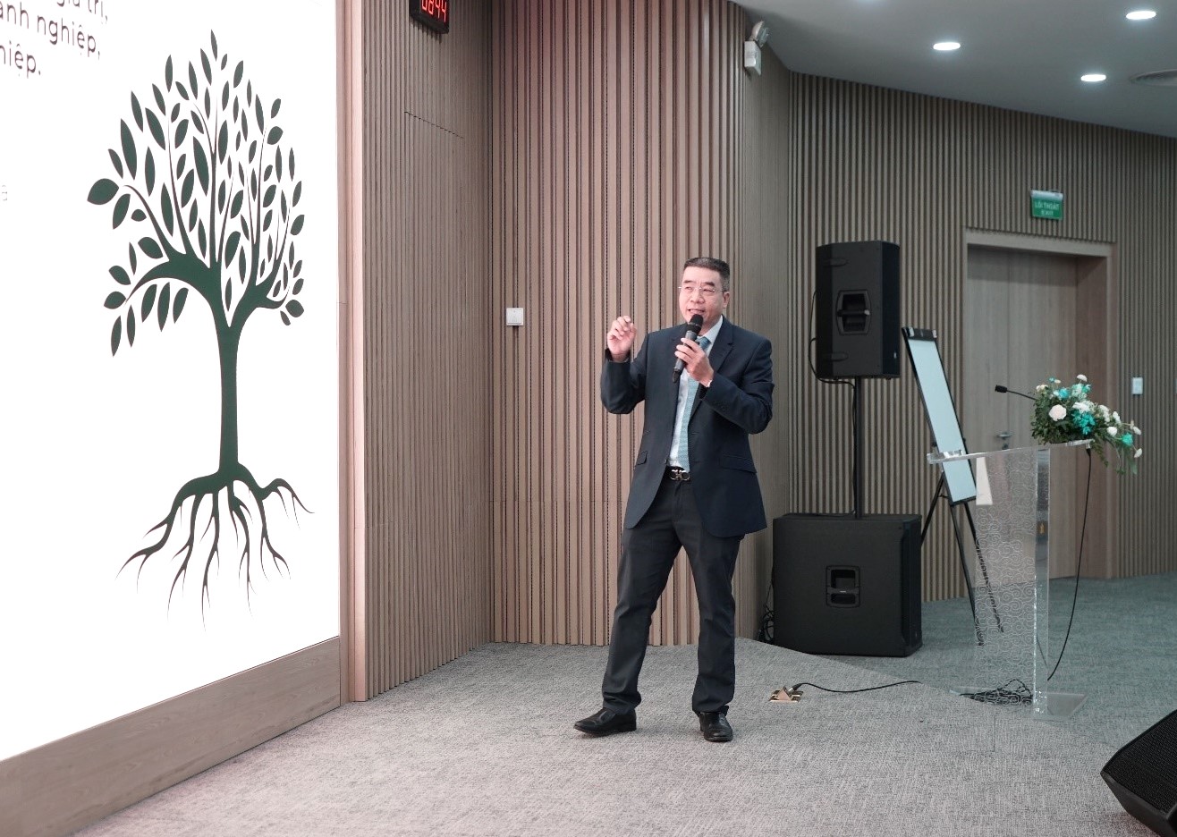 Mở đầu phần trình bày của mình, ông Lê Quang Vũ nhắc đến tầm quan trọng của văn hóa doanh nghiệp đối với sự phát triển của doanh nghiệp. Bắt nguồn từ nền tảng ngầm định là tầm nhìn, sứ mệnh, giá trị cốt lõi, Văn hóa doanh nghiệp (VHDN) là hệ thống các giá trị, nhận thức, hành vi và biểu hiện trong doanh nghiệp, làm nên bản sắc riêng của mỗi doanh nghiệp.