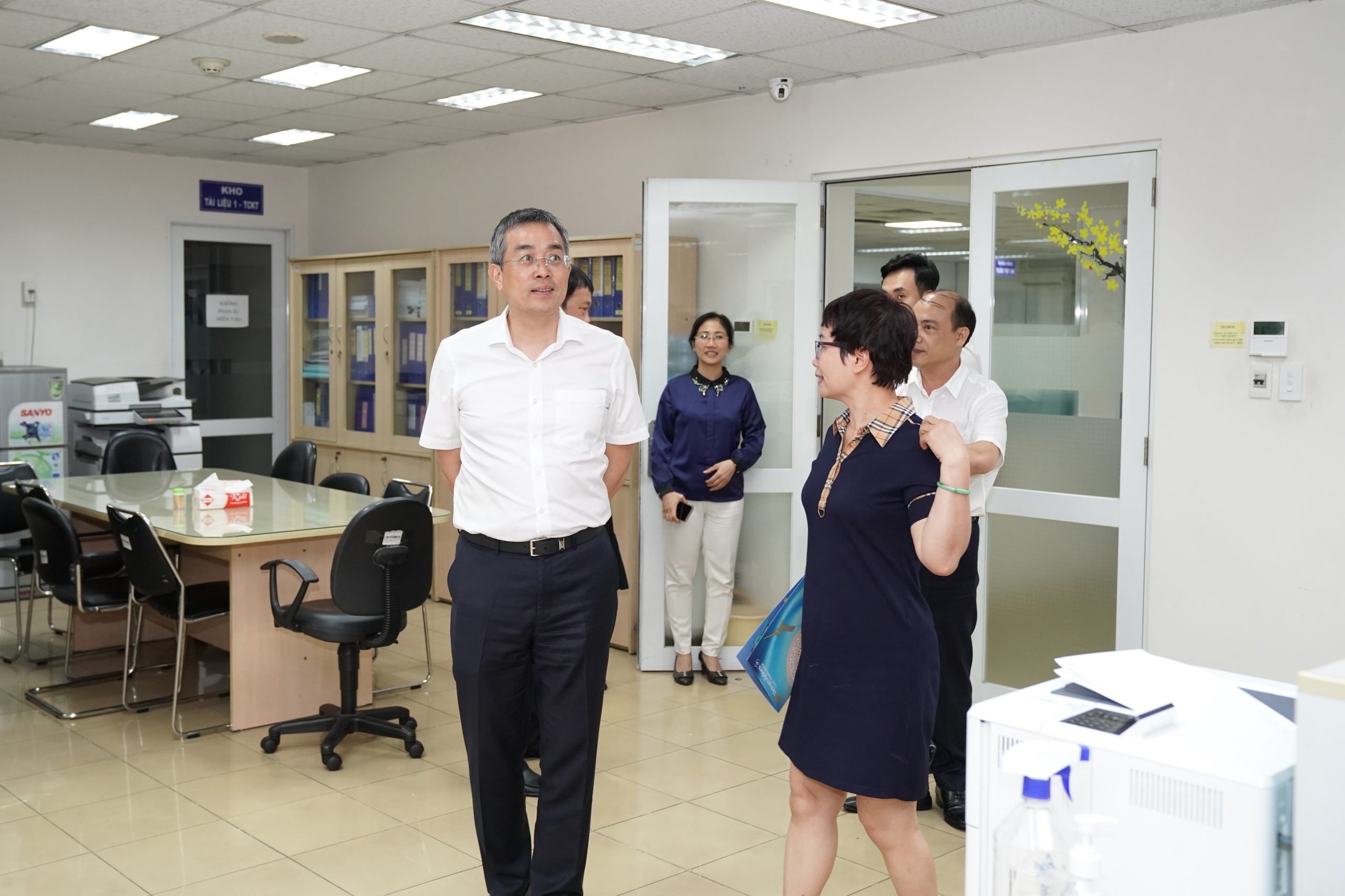 Đoàn công tác thăm nơi làm việc của các CBNV TECS. (Ảnh: Thế Sơn)