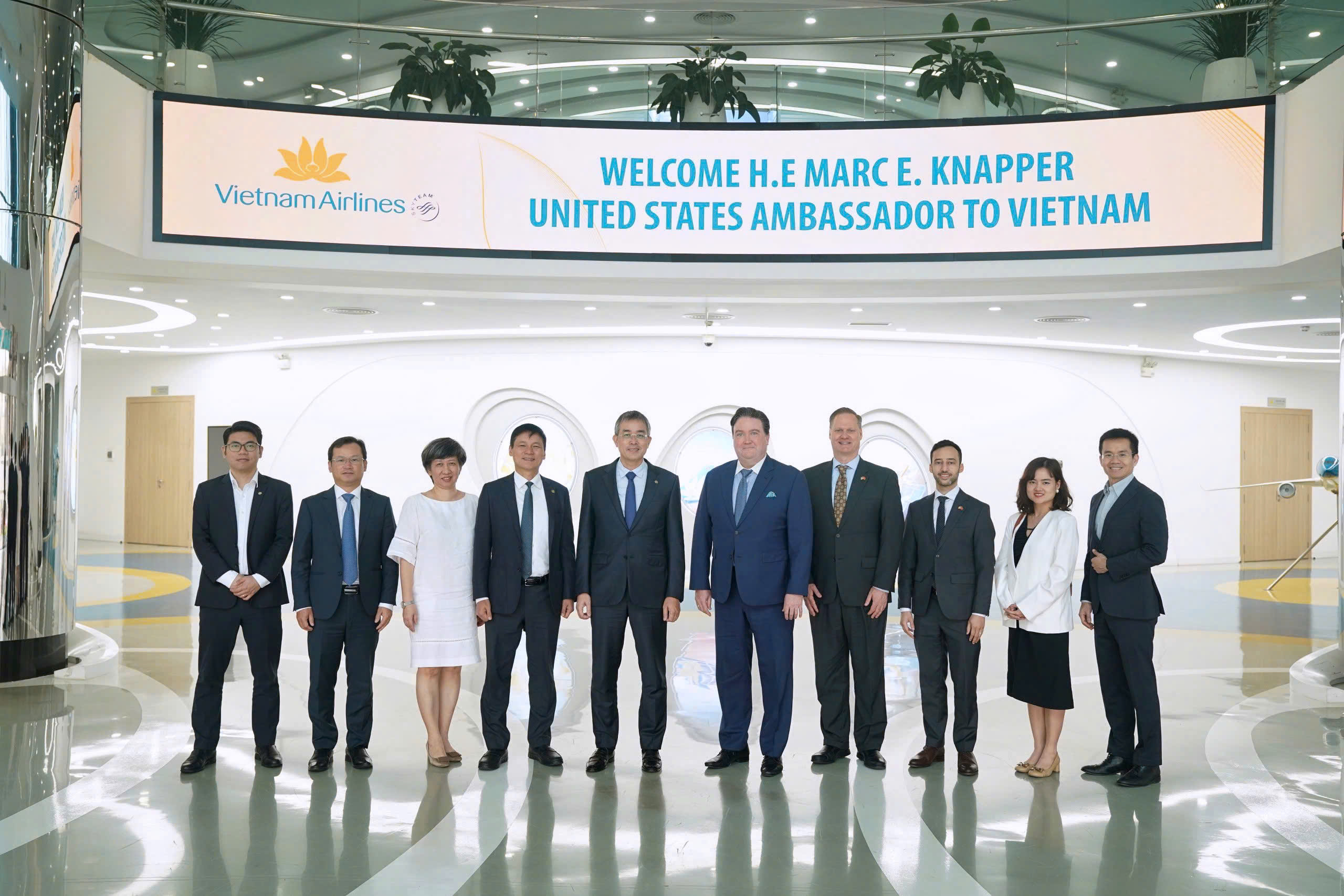 Về phía Hoa Kỳ, Đại sứ Marc E. Knapper đánh giá cao sự phát triển của Vietnam Airlines và cam kết sẽ hỗ trợ hãng trong việc mở rộng hoạt động tại thị trường này. Đặc biệt, Hoa Kỳ mong muốn thúc đẩy hợp tác trong lĩnh vực phát triển bền vững, bao gồm sử dụng nhiên liệu hàng không bền vững (SAF) và ứng dụng công nghệ mới nhằm giảm phát thải carbon.