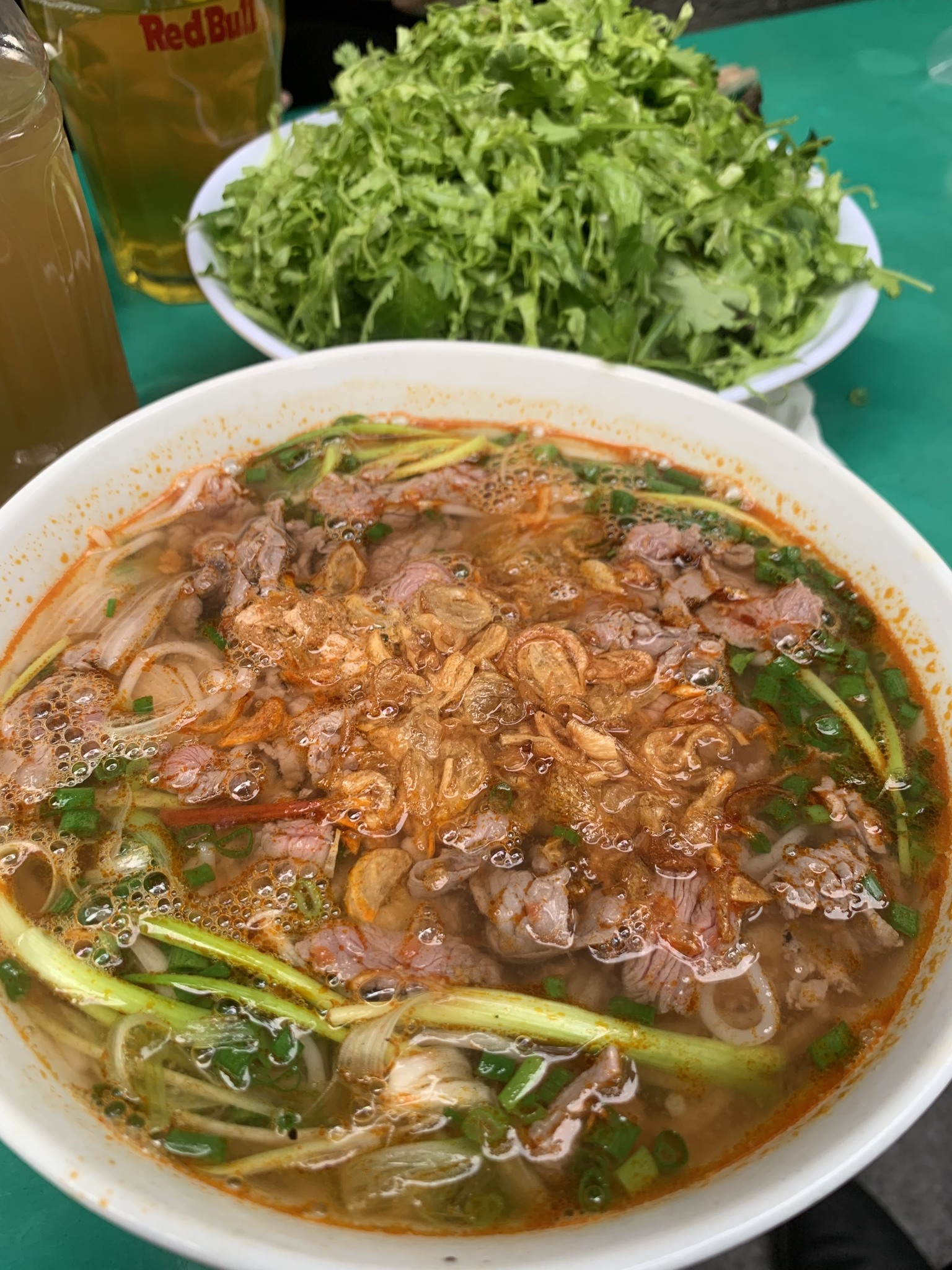Hành khô tự thái tự phi thơm nức mũi, cà chua đỏ au chín mềm và phần gạch vàng ươm chỉ được xử lý ở khoảng 7 giờ hơn tới 7 rưỡi, không bao giờ sớm hơn, vì Hà Nội đâu vội được đâu! Tuỳ theo khẩu vị, bát bún có thể chỉ là 1 bát bún với canh riêu, hoặc “full topping” (bò, giò, đậu, trứng vịt lộn), nhưng không thể thiếu rau thái nhỏ và ớt chưng, dấm bỗng gia giảm. Nếm 1 miếng nước dùng chua cay đang bốc khói, gắp bún cùng rau và thấp thoáng miếng gạch cua được xử lý hoàn hảo không chút mùi tanh, tâm trạng bỗng sáng bừng. Bài dự thi của tác giả Thái Anh.