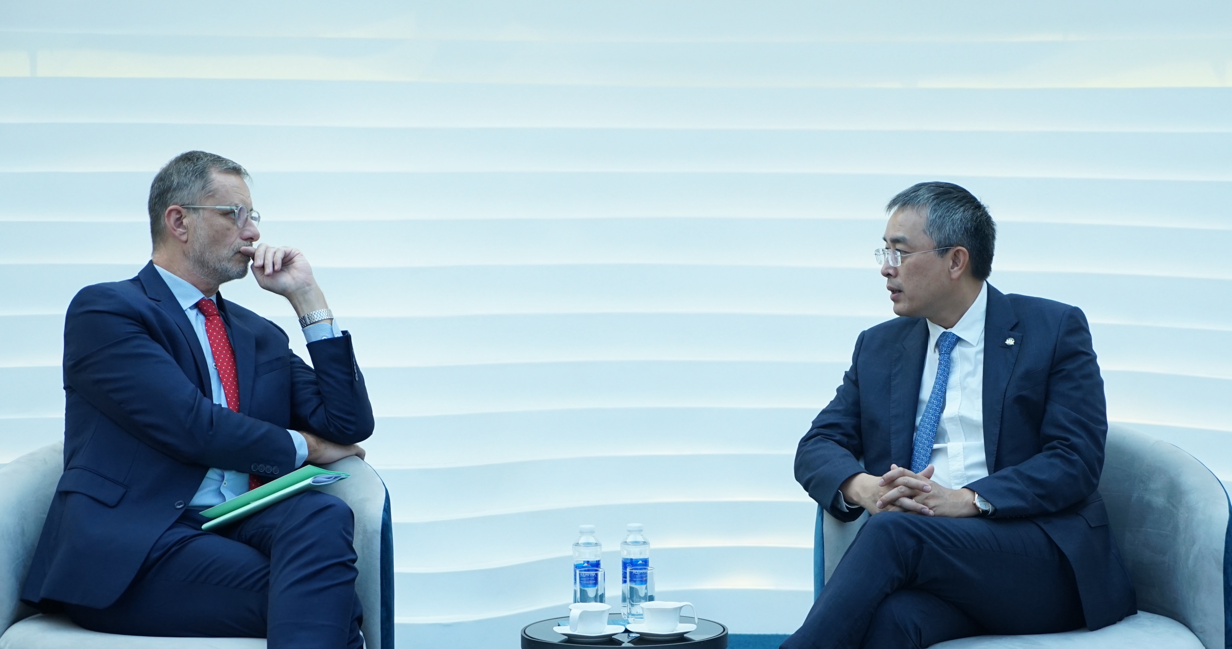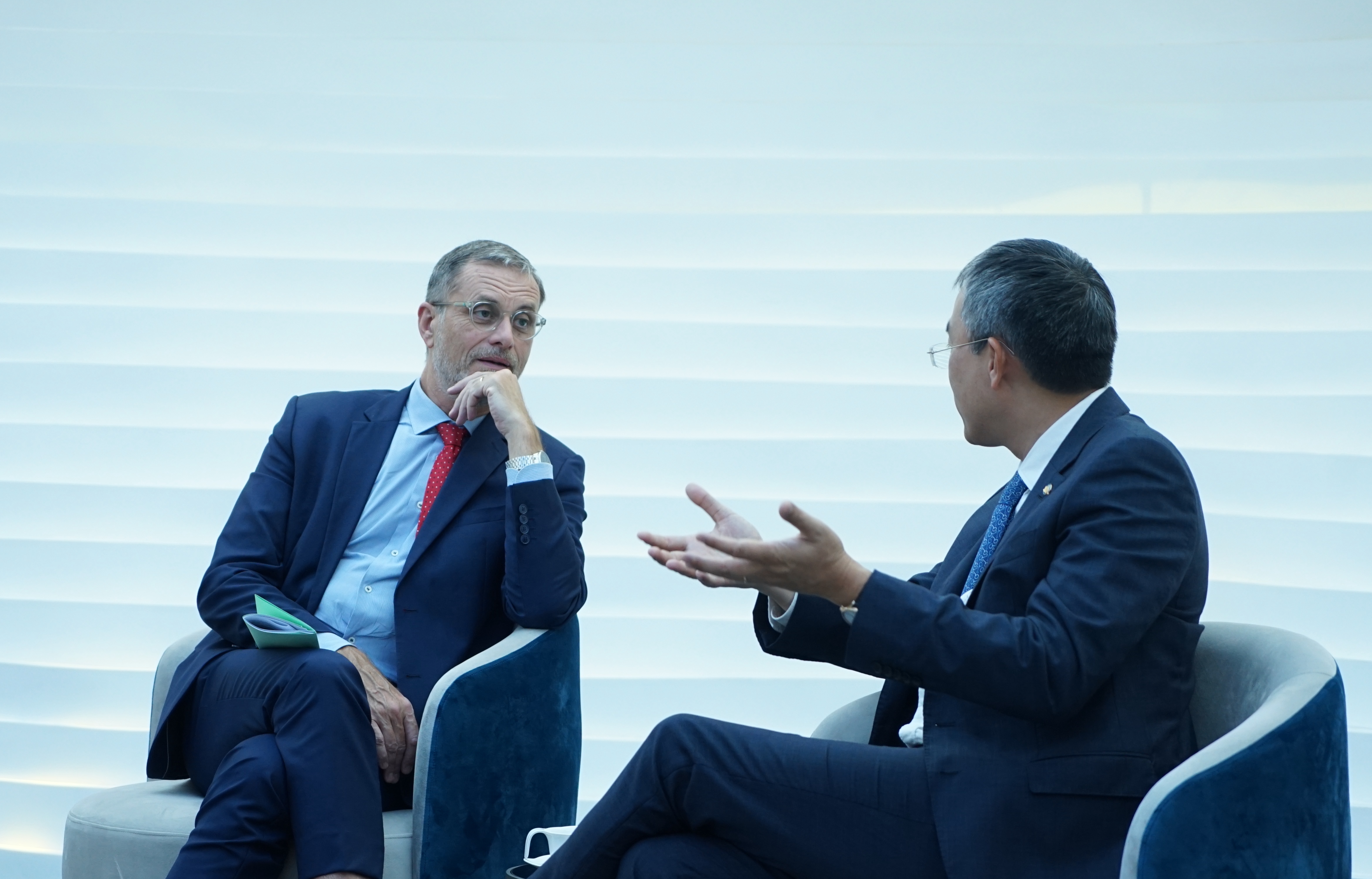 Đại sứ Pháp Olivier Brochet trao đổi với CT HĐQT Đặng Ngọc Hoà tại buổi gặp