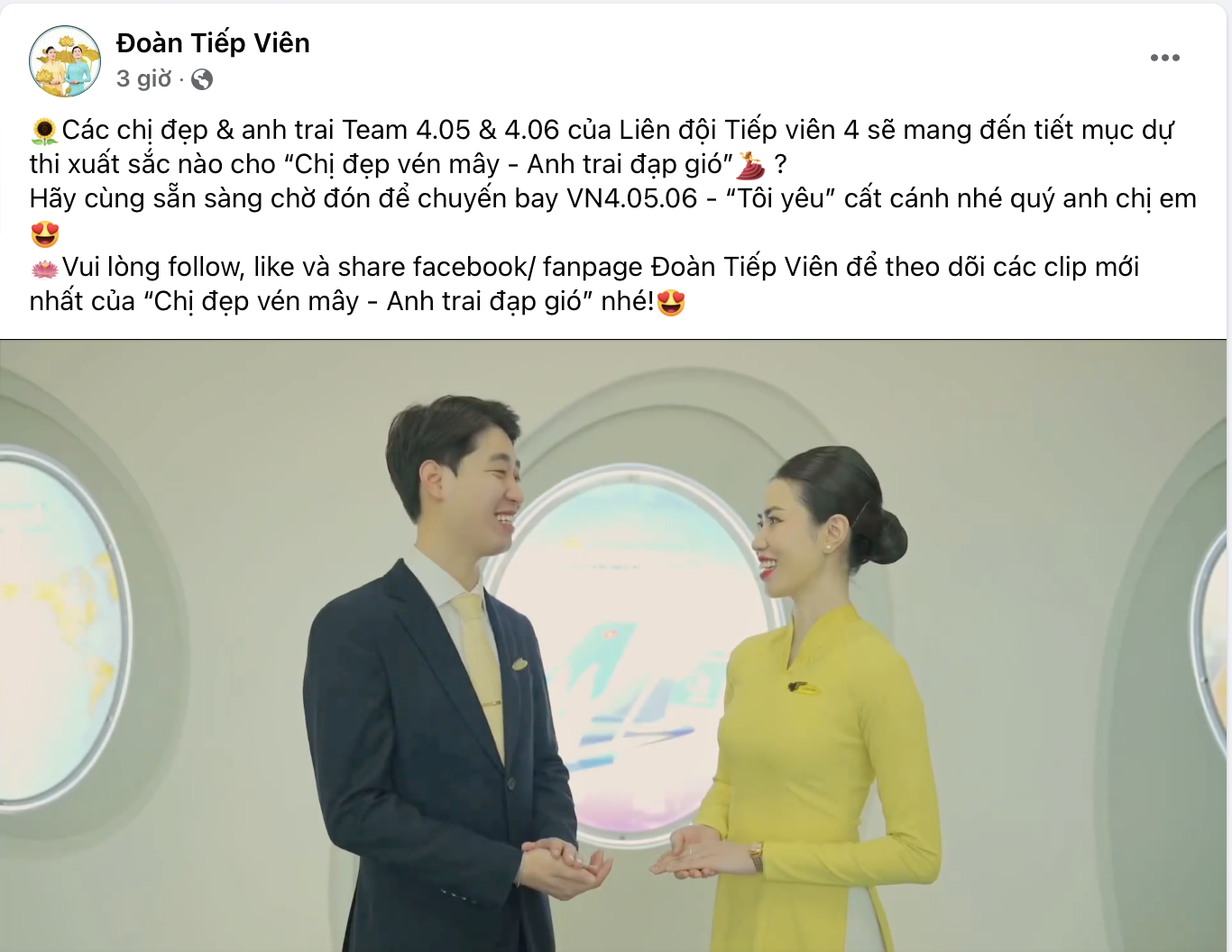 Đừng quên theo dõi và ủng hộ các tiếp viên tài năng của Đoàn tiếp viên trong chương trình “Vượt ngàn chông gai – Anh trai đạp gió & Qua ngàn sóng gió – Chị đẹp vén mây” nhé