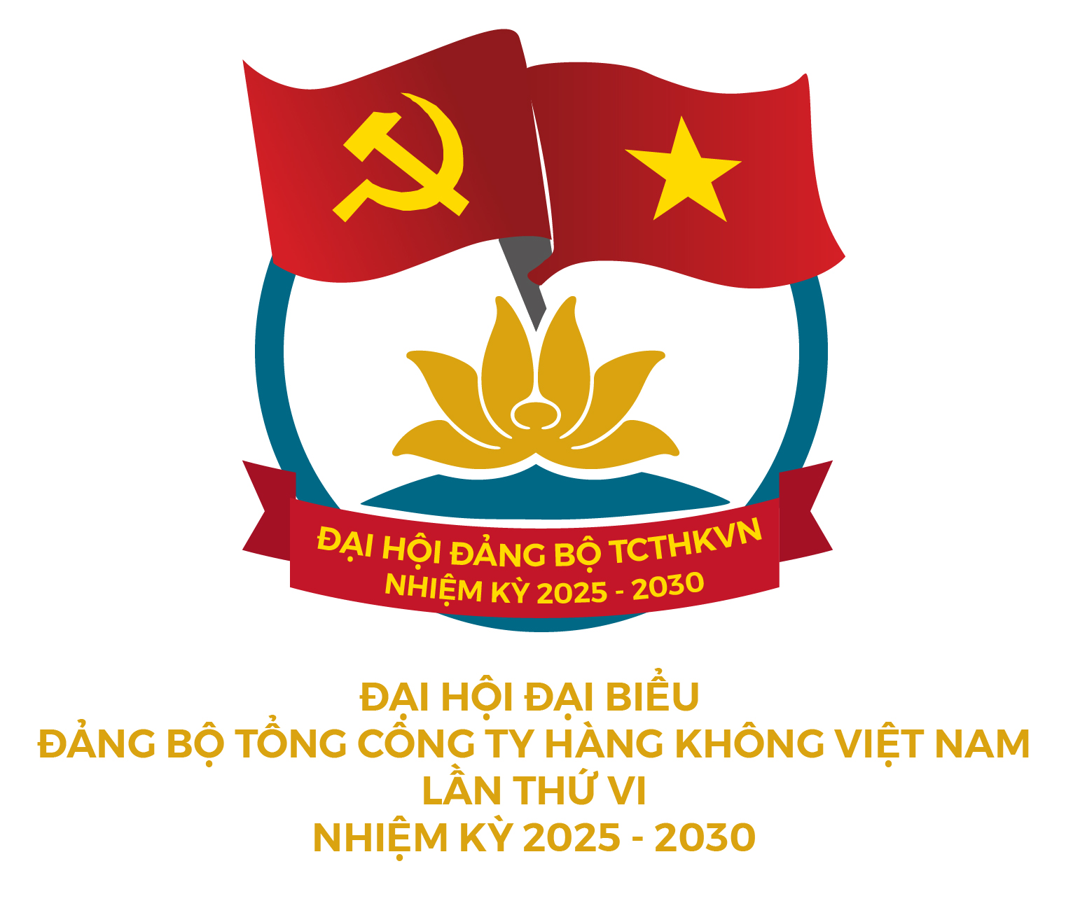Bên dưới điểm giao nhau của hai lá cờ là hình ảnh bông sen vàng – biểu tượng của Vietnam Airlines. Hình ảnh này hàm ý rằng Đảng và đất nước luôn là ngọn đuốc soi đường cho sự phát triển không ngừng của Vietnam Airlines trong hành trình đổi mới. Bông sen, vừa mang đậm bản sắc văn hóa Việt Nam, vừa là hình ảnh quen thuộc gắn liền với thương hiệu Tổng công ty, nay được nâng tầm trở thành biểu tượng của sự đổi mới và phát triển bền vững.