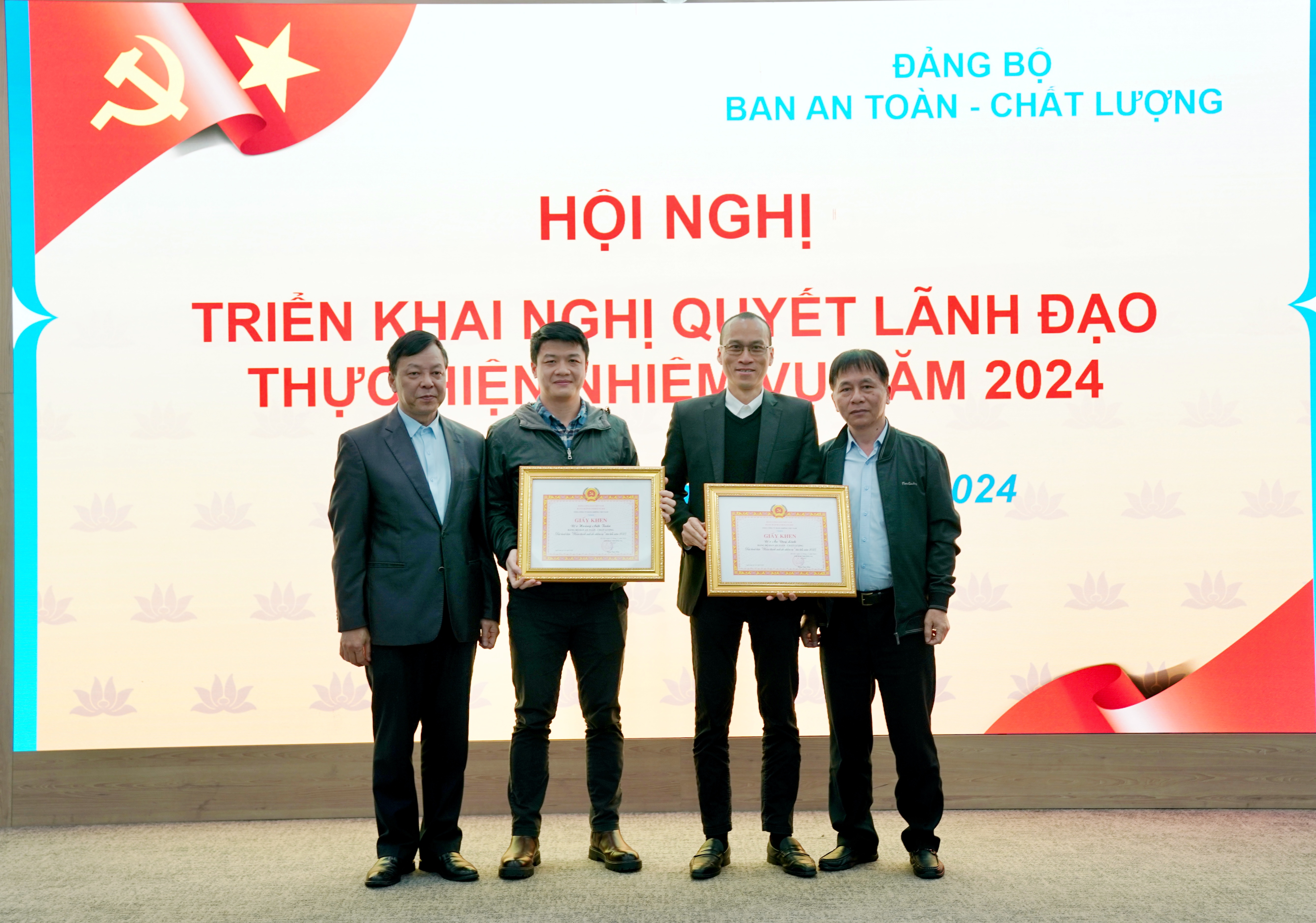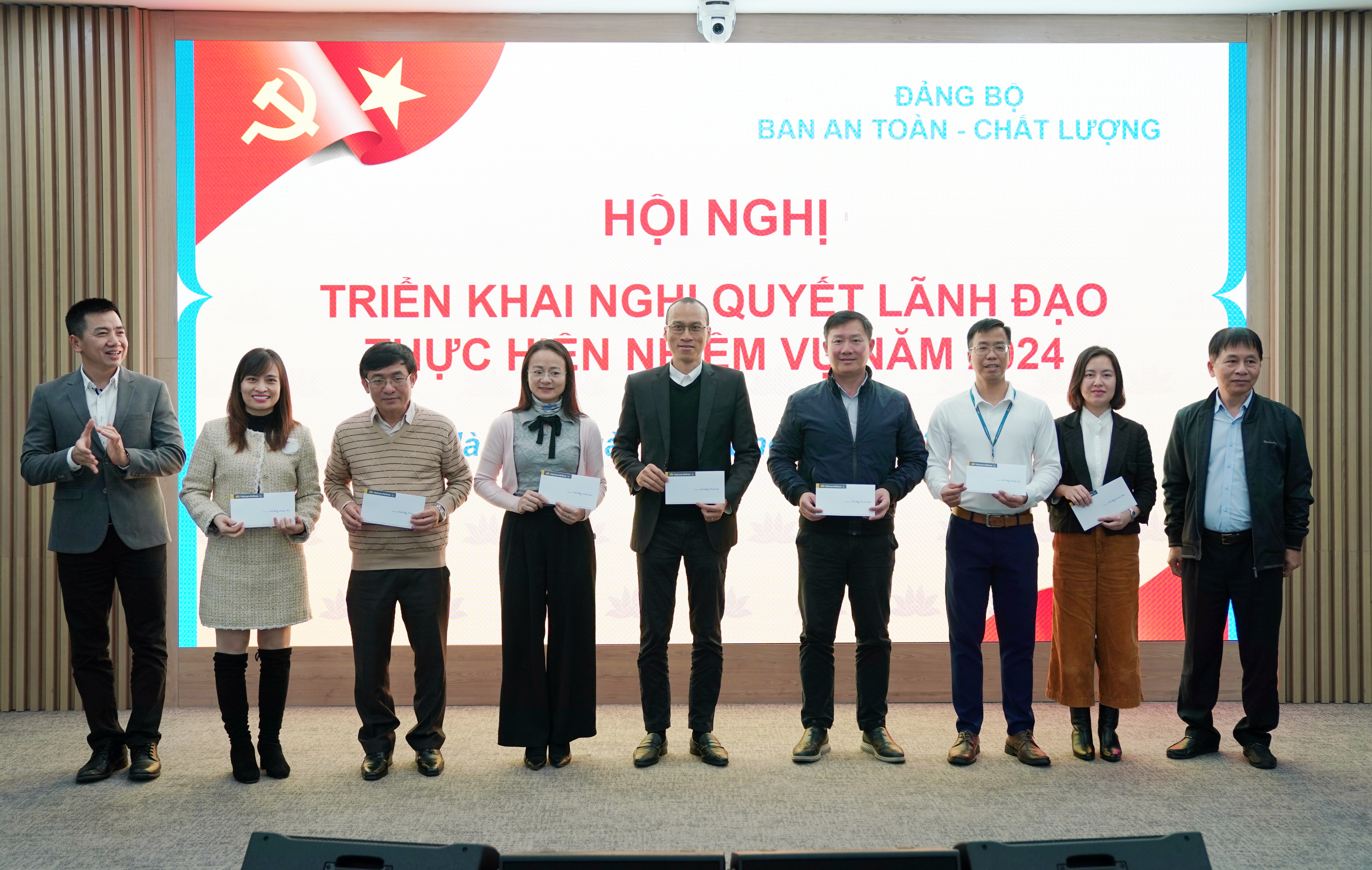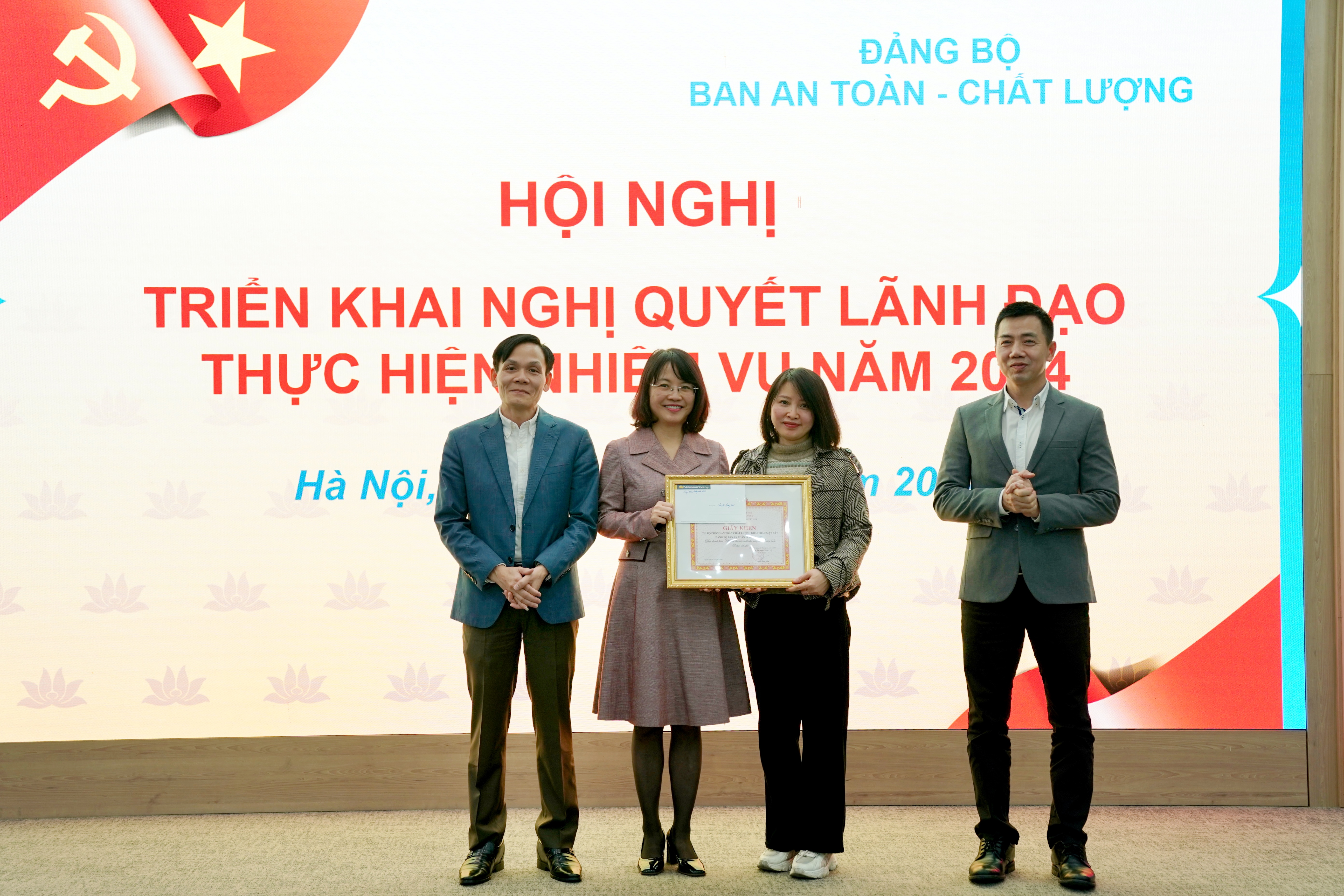 Với kết quả đã đã được, Đảng bộ Ban ATCL đã được Thường vụ Đảng ủy TCT công nhận là một trong 10 Đảng bộ hoàn thành xuất sắc nhiệm vụ trong năm 2023, 01 chi bộ trực thuộc và 03 đảng viên được đề nghị khen thưởng của Đảng ủy Khối Doanh nghiệp Trung ương, của Thường vụ Đảng ủy TCT vì đã hoàn thành xuất sắc nhiệm vụ 5 năm liền 2018-2022, 2019-2023 và năm 2023. Thay mặt Đảng ủy, đồng chí Bí thư Đảng ủy đã trao tặng phần thường của tổ chức Đảng các cấp cho Chi bộ Phòng An toàn- Chất lượng Khai thác mặt đất và các cá nhân được khen thưởng.