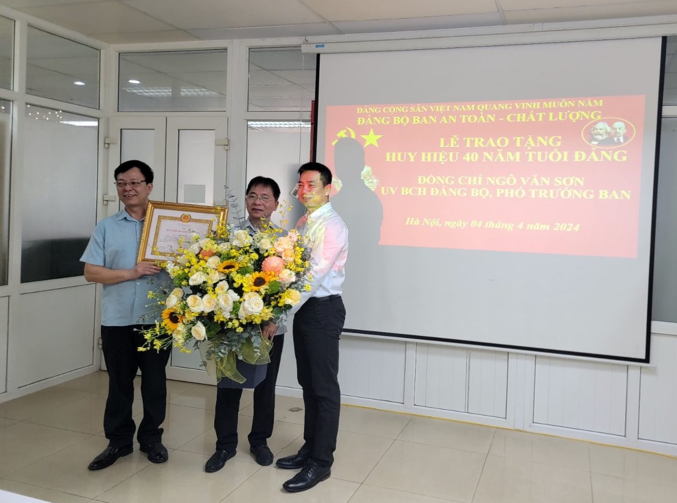 Bày tỏ xúc động và vinh dự khi được nhận Huy hiệu cao quý 40 năm tuổi Đảng, đồng chí Ngô Văn Sơn trân trọng cảm ơn Thường vụ Đảng ủy TCT, Đảng ủy Ban ATCL và đặc biệt là Chi bộ Phòng ATCL Khai thác bay, nơi đồng chí sinh hoạt, học tập và công tác đã quan tâm, dành những tình cảm tốt đẹp, chúc mừng đồng chí tại buổi lễ.
