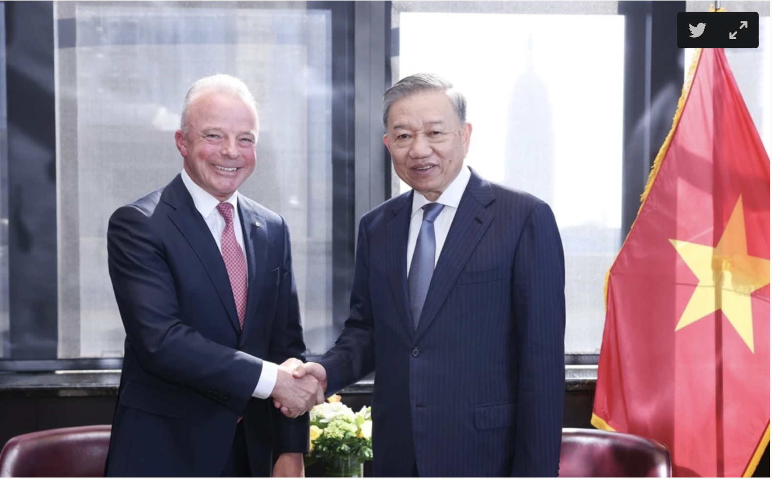 Ngày 22/9, tại New York, Tổng Bí thư, Chủ tịch nước Tô Lâm tiếp ông Brendan Nelson, Phó chủ tịch cấp cao Tập đoàn Boeing kiêm Chủ tịch Công ty Boeing Global.