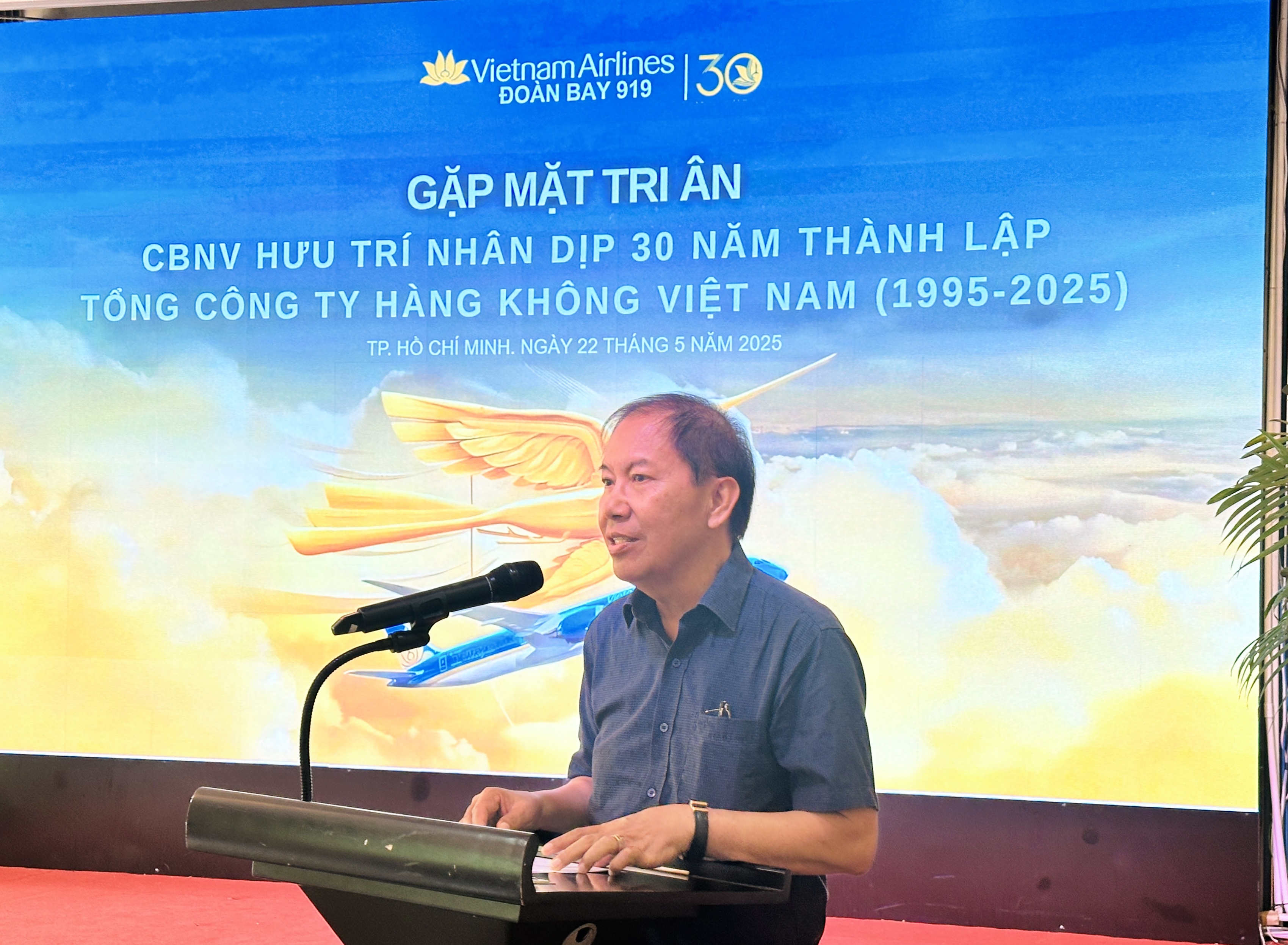 Phó Tổng giám đốc xúc động chia sẻ sự tri ân: “Xin gửi lời cảm ơn chân thành đến các cán bộ, nhân viên các thế hệ, cũng như hàng triệu triệu khách hàng thân thiết đã đồng hành cùng Vietnam Airlines trong suốt 30 năm qua. Với sự đoàn kết, nỗ lực không ngừng nghỉ và tầm nhìn chiến lược đúng đắn, chắc chắn các thành viên Vietnam Airlines sẽ cùng nhau kiến tạo những kỳ tích mới, đưa Vietnam Airlines tiếp tục bay cao và bay xa hơn nữa, khẳng định vị thế của Tổng công ty Hàng không Việt Nam, tập đoàn kinh tế mạnh và trở thành niềm tự hào của Việt Nam trên trường quốc tế. Buổi gặp gỡ hôm nay không chỉ là dịp để tri ân, mà còn là sự tiếp nối – để thế hệ hôm nay được lắng nghe, được học hỏi và được tiếp lửa từ các bậc tiền bối. Chúng tôi mong rằng, các đồng chí, các cô chú, anh chị sẽ tiếp tục dõi theo, đồng hành, chia sẻ kinh nghiệm quý báu, và luôn là điểm tựa tinh thần vững chắc cho các thế hệ sau trên hành trình chinh phục bầu trời”