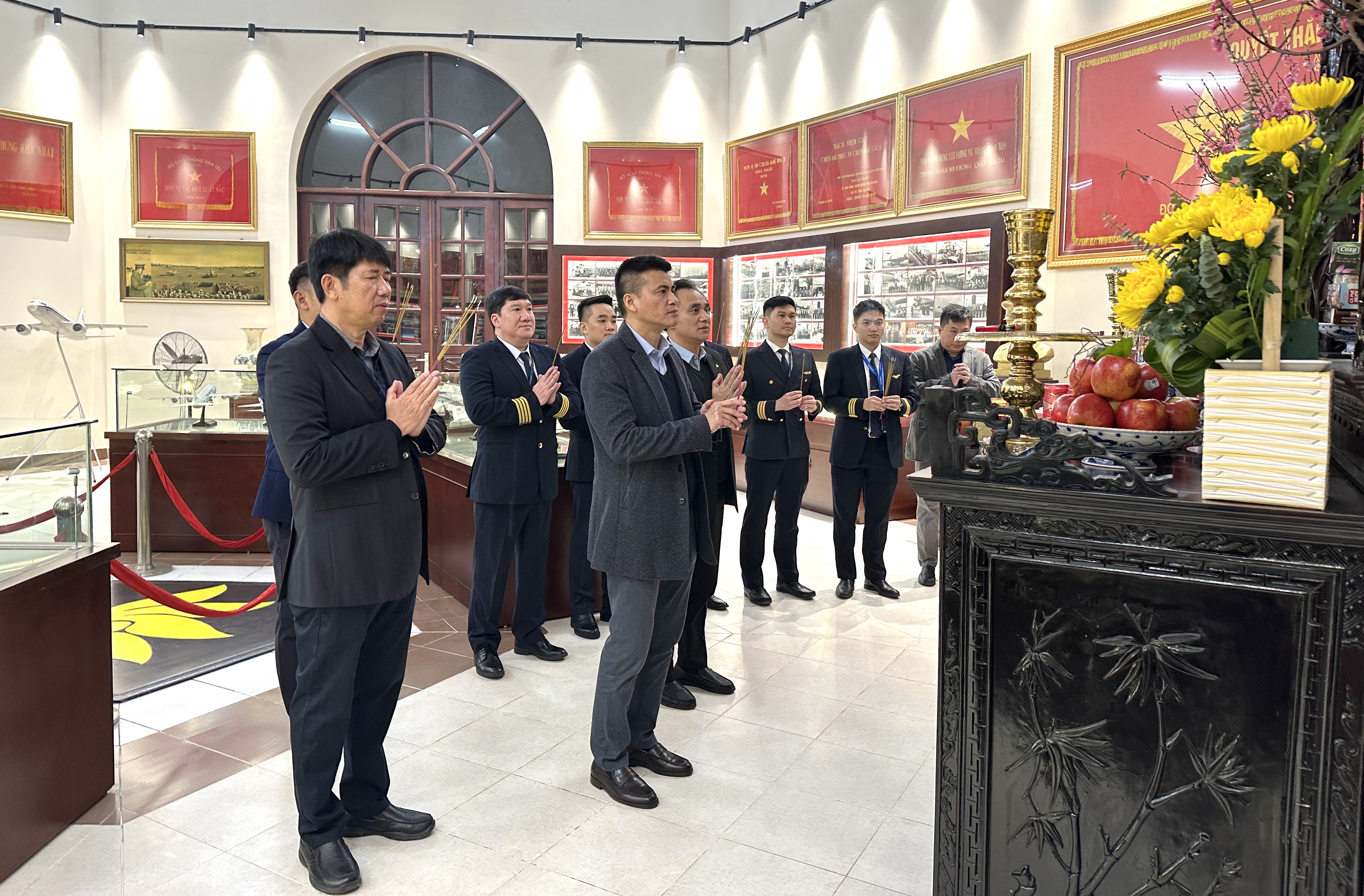 Trước đó, vào đêm Giao thừa, Ban Lãnh đạo Đoàn bay cùng các phi công, cán bộ nhân viên trực Tết đã tiến hành dâng hương tưởng niệm Chủ tịch Hồ Chí Minh và anh linh các Anh hùng Liệt sĩ tại Nhà truyền thống Đoàn bay.