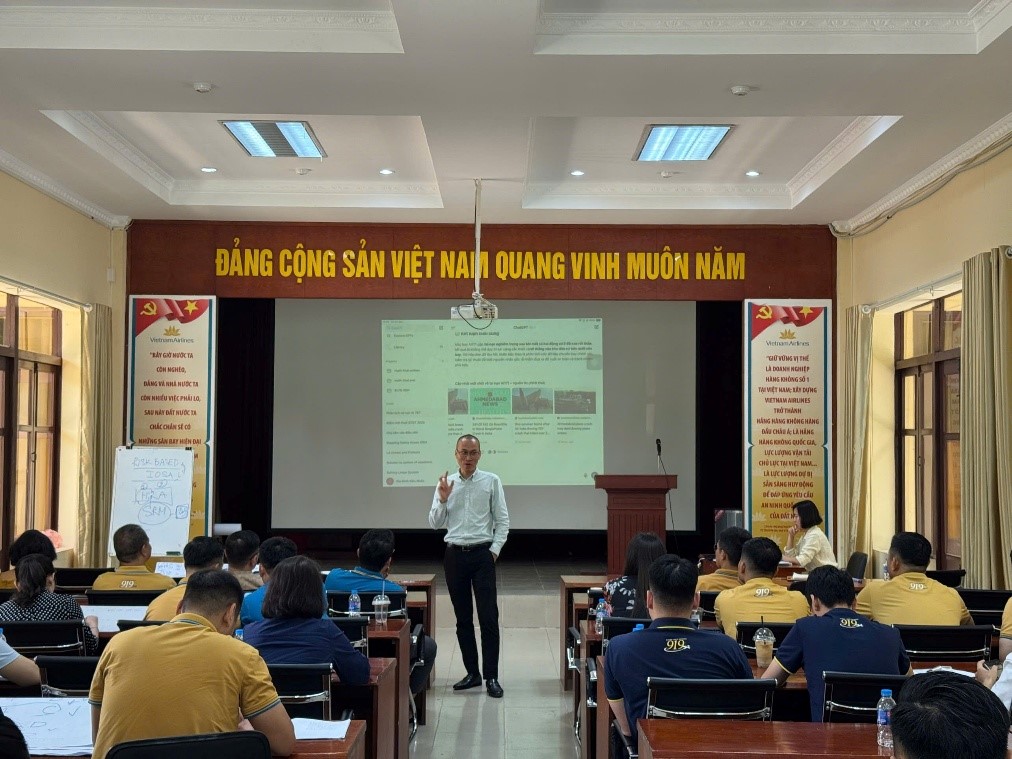Trong 2 ngày 12-13/6/2025, khóa huấn luyện về RBI đã được tổ chức với sự góp mặt của Lãnh đạo Tổng công ty – PTGĐ Tô Ngọc Giang, Ban lãnh đạo Đoàn bay, các chuyên viên phụ trách an toàn cũng như gần 50 phi công từ nhiều đội tàu bay khác nhau. Khóa học diễn ra trong vòng một ngày rưỡi, tập trung làm rõ những điểm mới trong phương pháp đánh giá Risk-based IOSA – từ cách tiếp cận, phạm vi đánh giá đến công cụ nhận diện rủi ro. Trong khóa huấn luyện, đại diện Ban ATCL là ông Âu Duy Linh – Trưởng phòng Quản lý An toàn Chất lượng đã trực tiếp chia sẻ những thông tin cập nhật và thực tế nhất từ IATA đồng thời giúp các học viên dễ dàng nắm bắt sự khác biệt giữa đánh giá truyền thống và đánh giá dựa trên rủi ro.