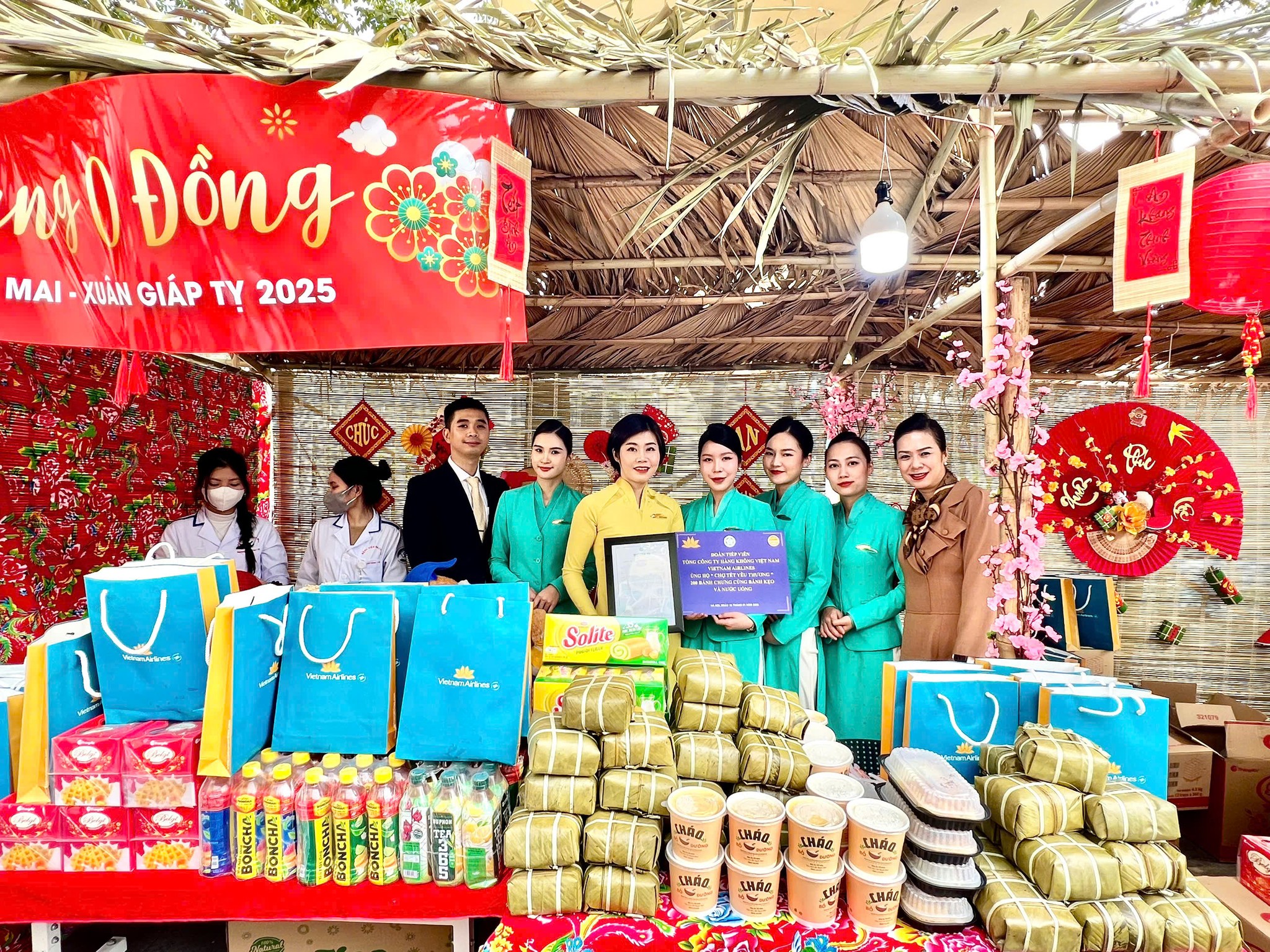 Cùng với đó, vào chiều 15/01/2025, Đoàn Tiếp viên Vietnam Airlines cũng tham gia chương trình “Chợ Tết Yêu Thương” tại Bệnh viện Bạch Mai (Hà Nội). Đây là một hoạt động thường niên của bệnh viện nhằm gây quỹ hỗ trợ các bệnh nhân phải ở lại điều trị trong dịp Tết Nguyên Đán.