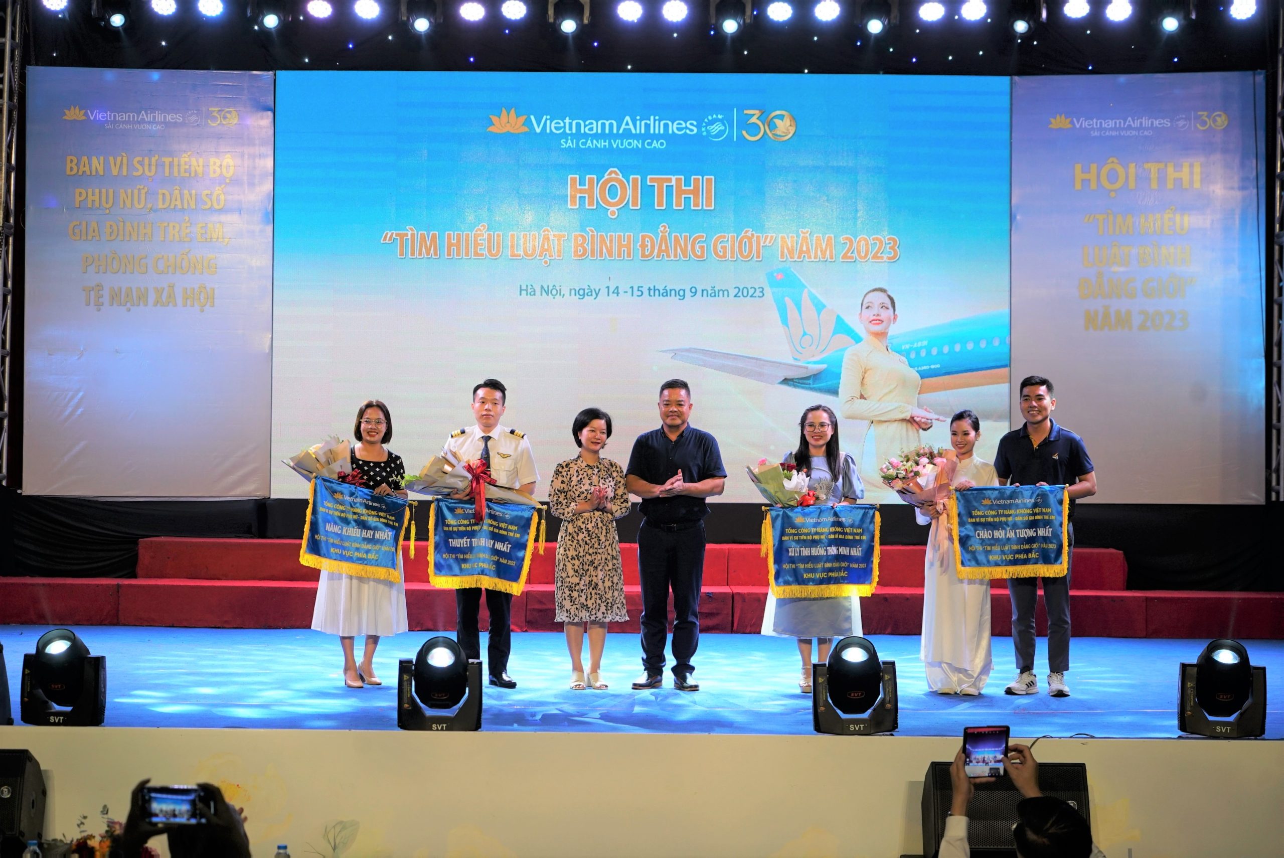 Hội thi “Tìm hiểu luật bình đẳng giới năm 2023” khu vực miền Bắc đã diễn ra thành công tốt đẹp, 5 đội thi đạt giải Nhất, Nhì và Ba sẽ tham dự vòng chung kết Hội thi Bình đẳng giới 2023 sẽ được tổ chức vào tháng 10 tới. Hy vọng rằng CBNV VNA Group sẽ có thêm nhiều sân chơi như Hội thi Bình đẳng giới 2023 để có cơ hội được học hỏi, tìm hiểu kiến thức, thể hiện nhiều tài năng hơn nữa trong tương lai.