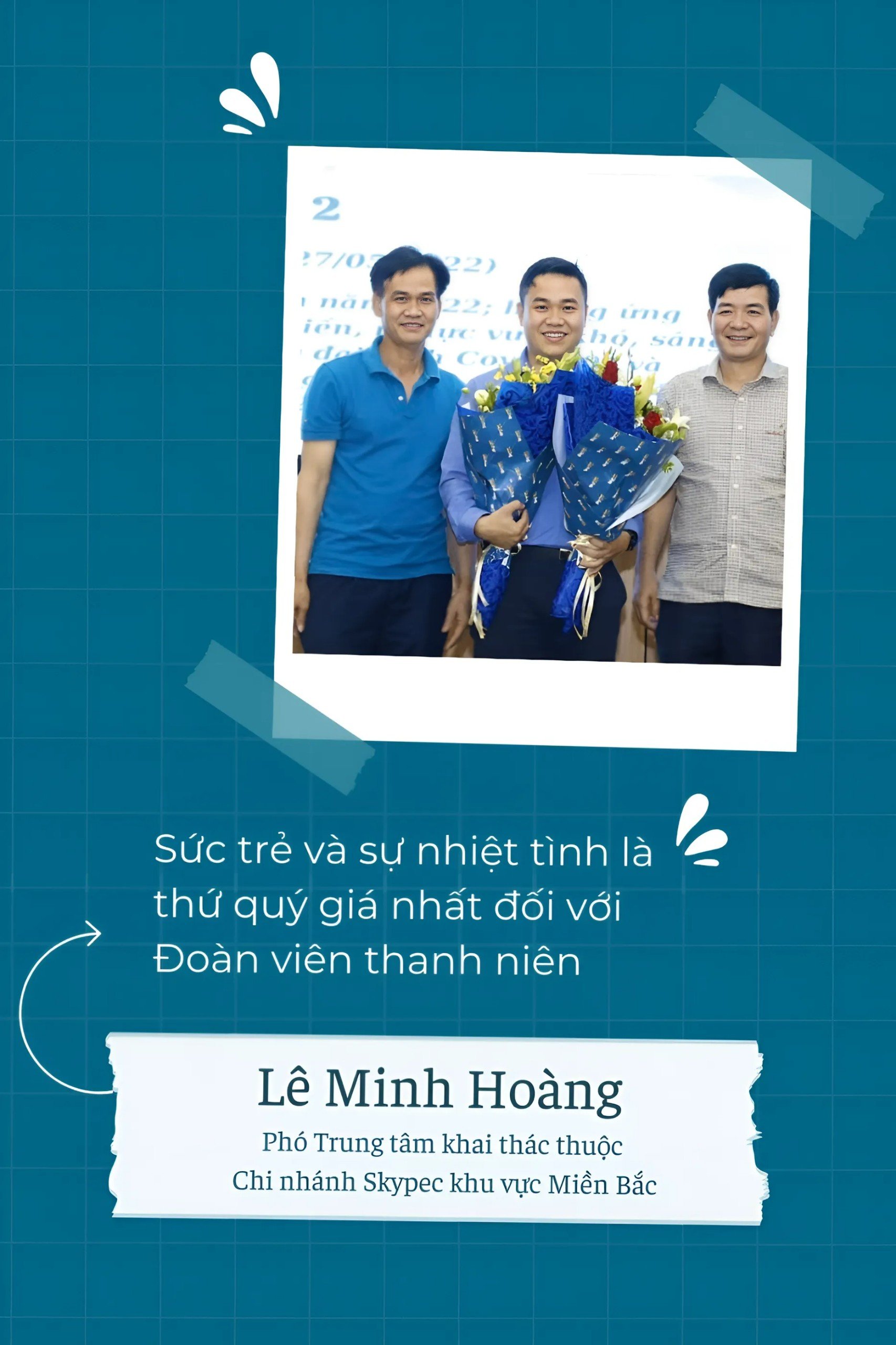 Là một người yêu thích các hoạt động văn nghệ, thể thao, anh Lê Minh Hoàng là đoàn viên tiêu biểu của BCH Đoàn cơ sở Skypec từ những ngày đầu gia nhập. Không chỉ có cơ hội để cống hiến, phát huy thế mạnh bản thân, hoạt động Đoàn cũng là nơi kết nối anh những người bạn mới. “Tới thời điểm này, có thể nói đi đâu trên khắp Việt Nam này mình cũng có những người bạn rất thân. Điều đó thực sự rất tuyệt vời.” – anh Hoàng chia sẻ.